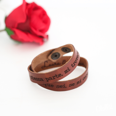 Senti ancora il cuore a mille e le farfalle nello stomaco, ringrazi ogni mattino il destino per averti portato a conoscere la persona di cui sei profondamente innamorato? Pensiamo che questa frase di San Valentino sia perfetta per far capire al tuo partner che è la cosa migliore che ti sia mai capitata nella vita, perché non avresti potuto desiderare niente di meglio! Incidi questa frase romantica per lei o per lui su questo bellissimo braccialetto con frase nascosta per ricordagli in ogni momento l’amore che provi nei suoi confronti.