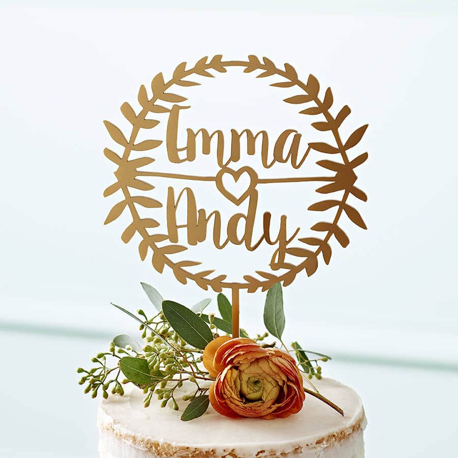 6. Cake Topper con Ghirlanda e Nomi degli Sposi