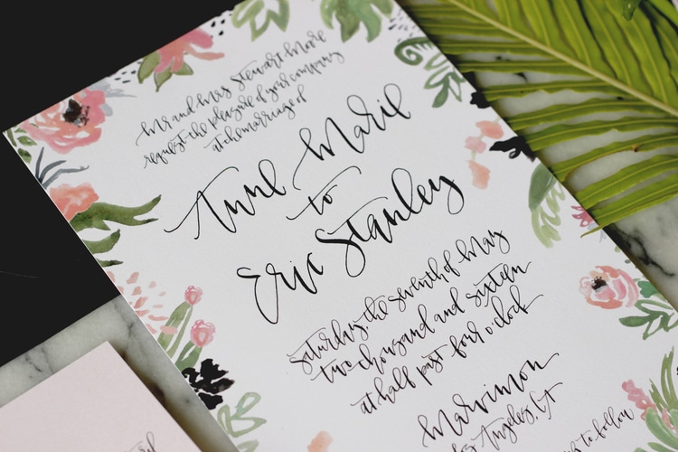 7. Partecipazioni con Fiori Acquerello Calligrafate a Mano