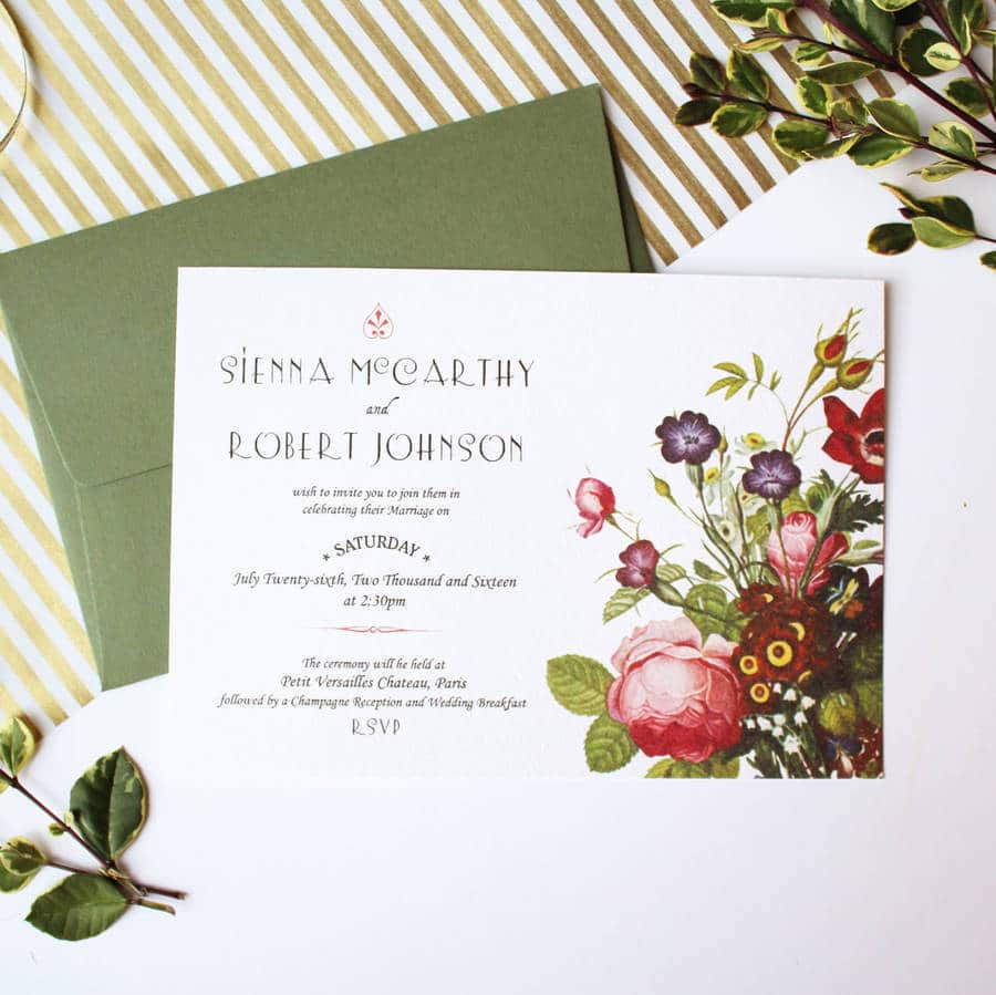 10. Partecipazioni Eleganti con Mazzo di Rose e Fiori di Campo