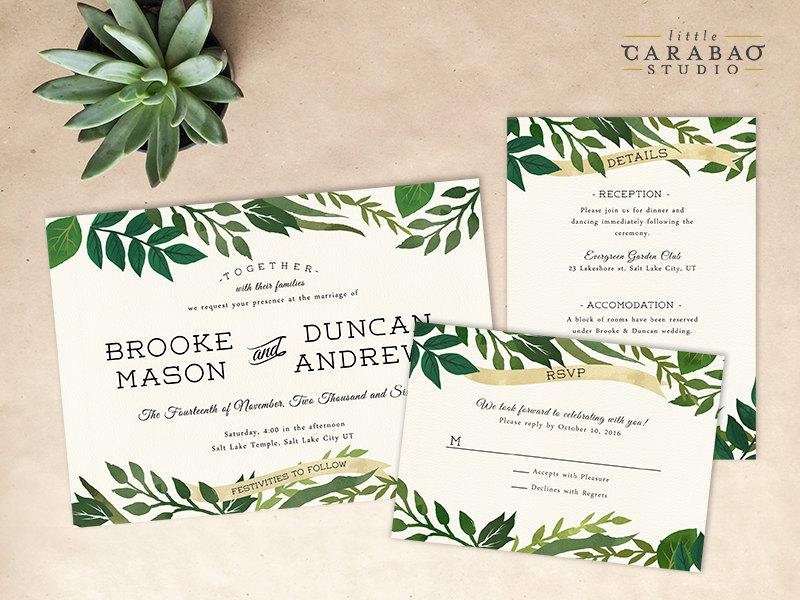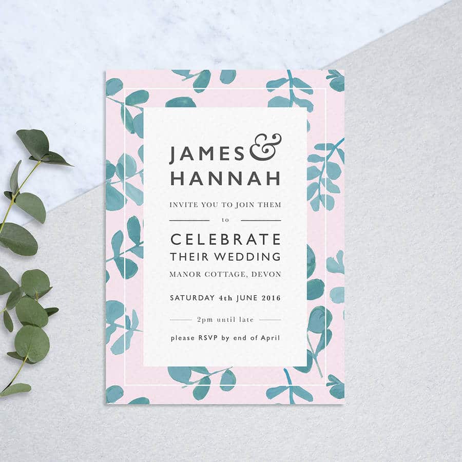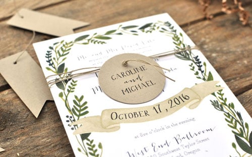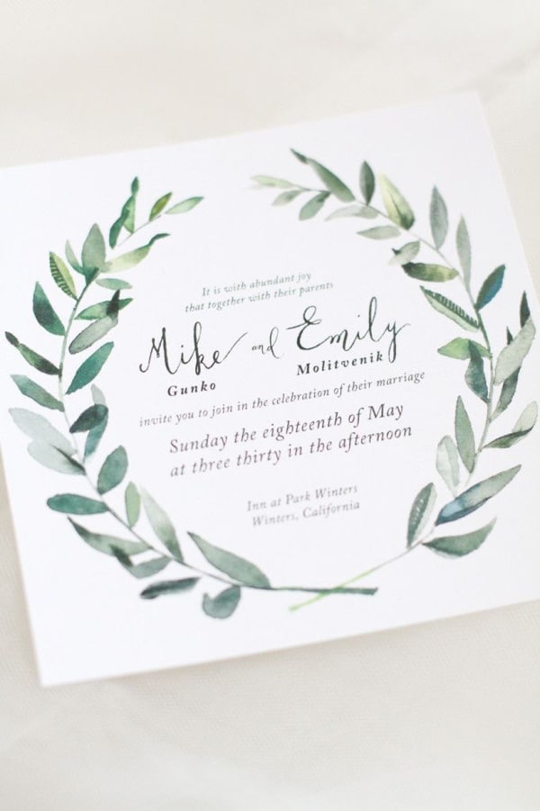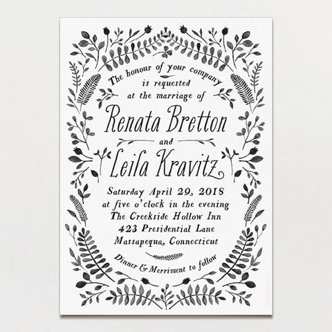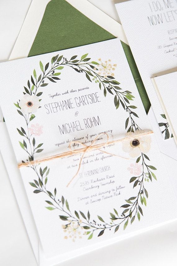 18. Partecipazione con Ghirlanda di Foglie e Fiori