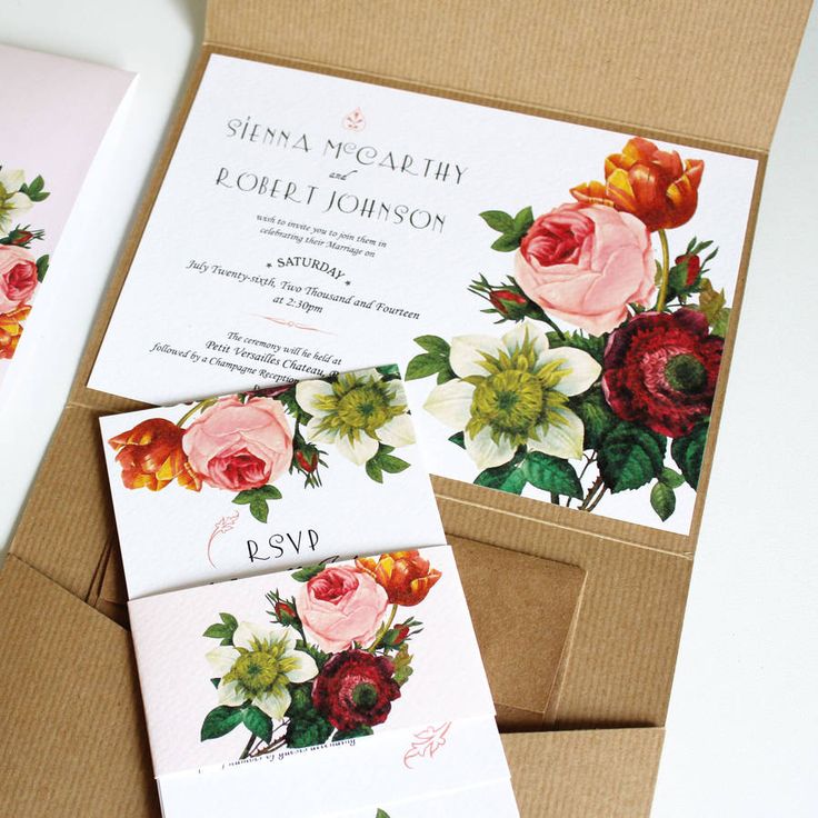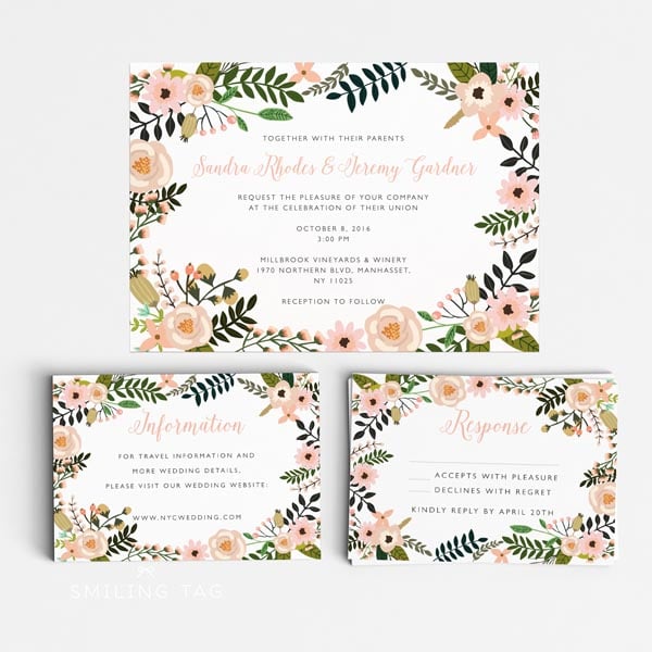 13. Partecipazioni Vintage con Bordo Rosa e Foglie