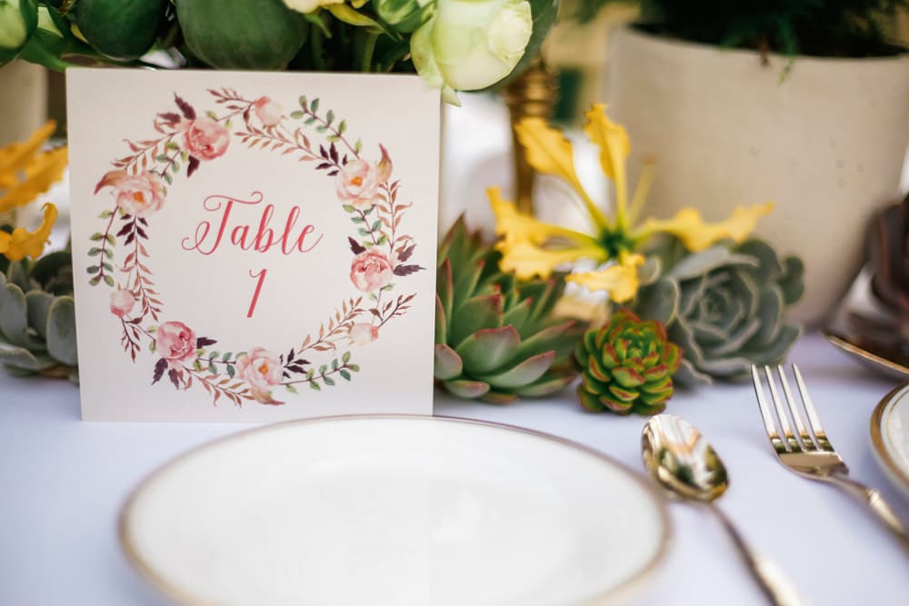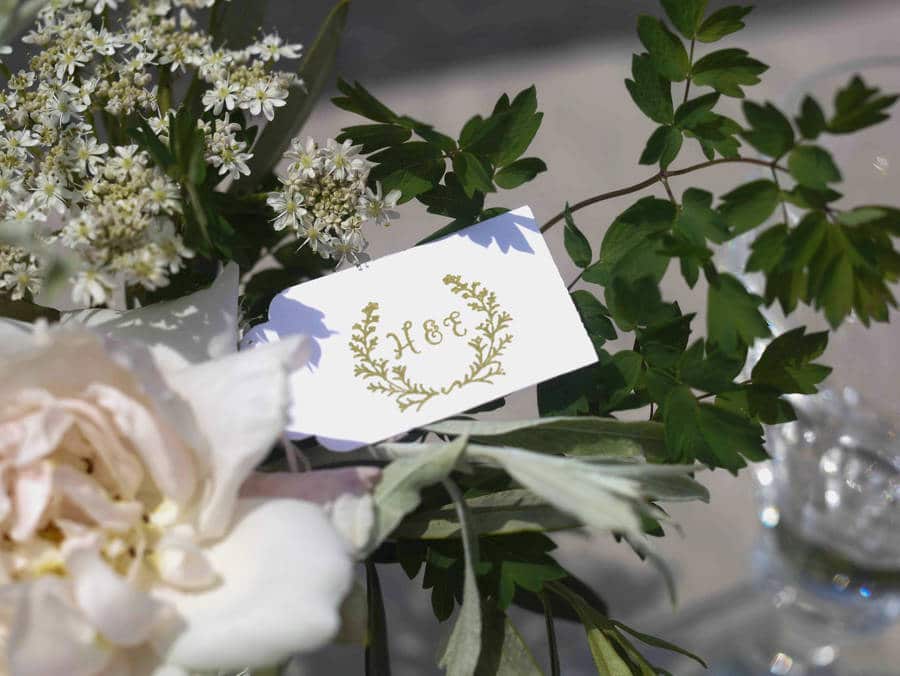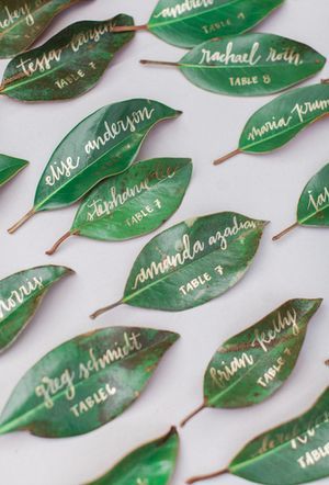 37. Segna Posto con Foglie Illustrate e nome Calligrafato