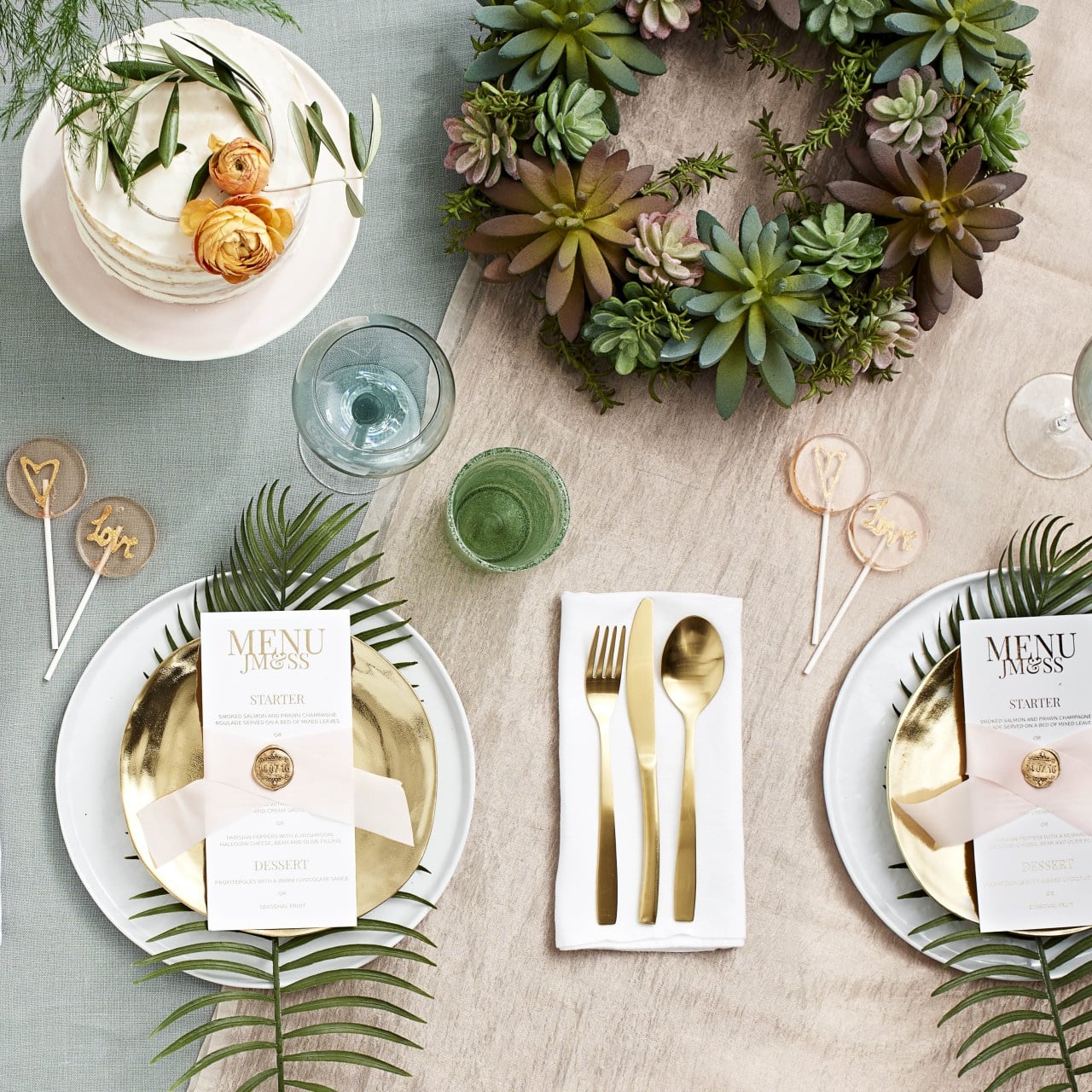 47. Posto Tavola in Stile Botanico con Menu e Dettagli Oro