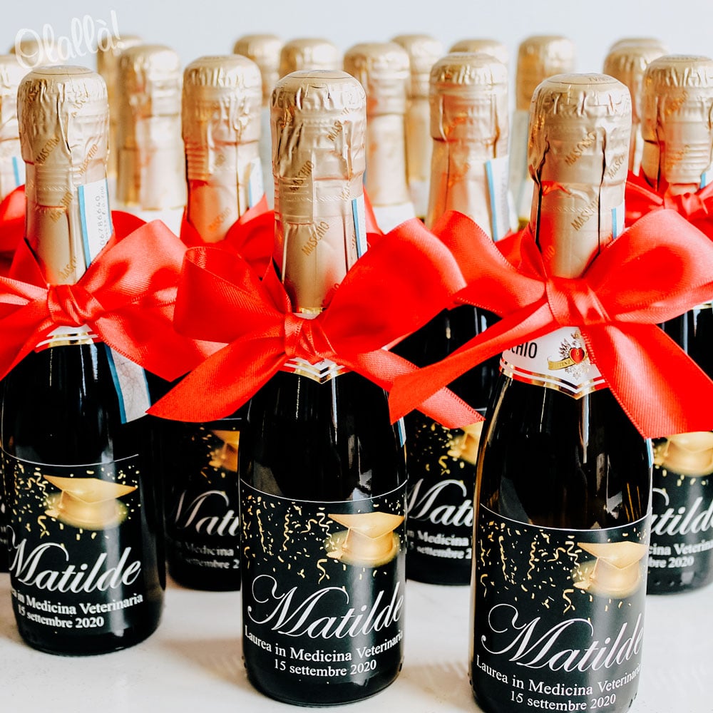 18 recensioni per Bottigliette di Prosecco con Etichetta Personalizzabile Nera e Oro – Bomboniera Laurea Originale