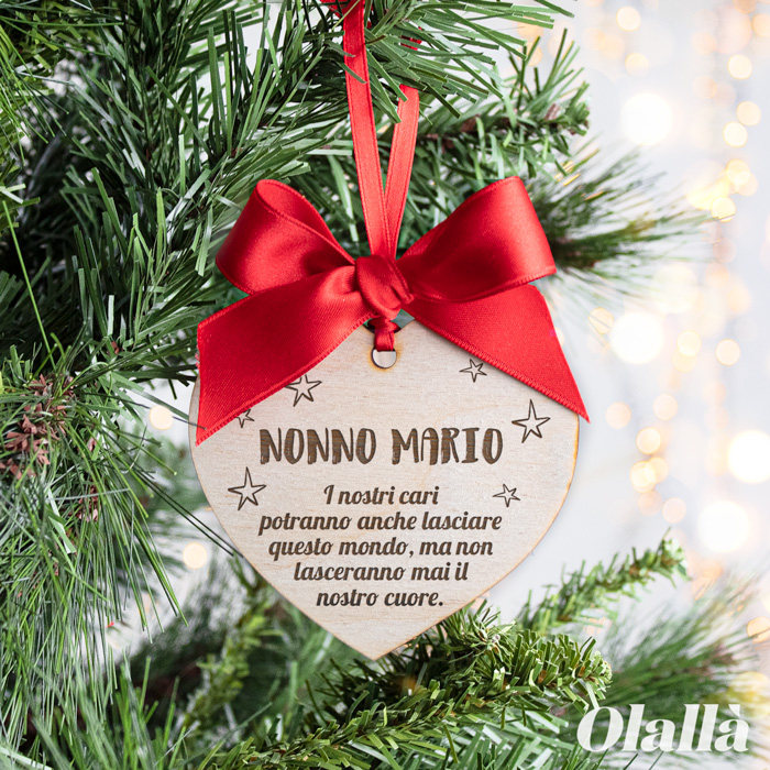 Cuore in legno personalizzato con la vostra frase del cuore. Pensato per ricordare i nostri cari che sono venuti a mancare, ma che sono sempre nei nostri cuori, specialmente a Natale.