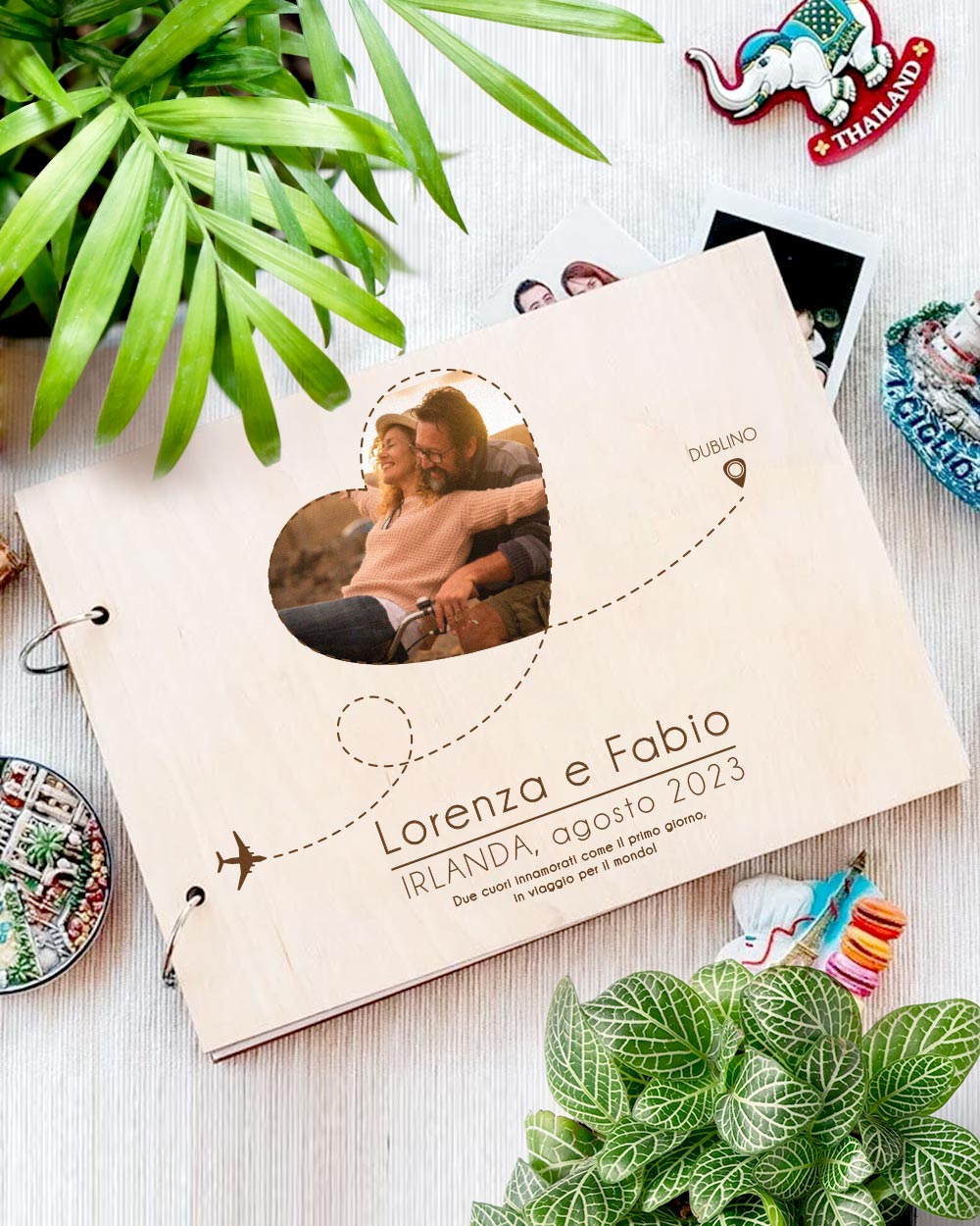 - Un Cuore Personalizzato: Ogni album viene magistralmente personalizzato con la vostra foto, i vostri nomi e la destinazione. Una celebrazione unica del vostro amore.