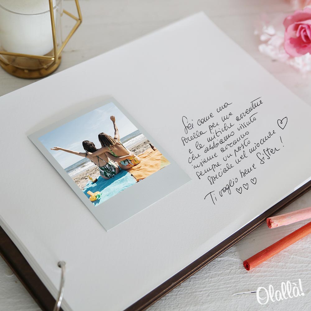 Splendido album dei ricordi in legno personalizzato per far rivivere e conservare per sempre le migliori avventure che hai condiviso insieme alla tua migliore amica! Riempito dei tuoi messaggi e delle vostre foto più belle, sarà un regalo emozionante che puoi fare in occasione del suo compleanno o di un evento speciale.