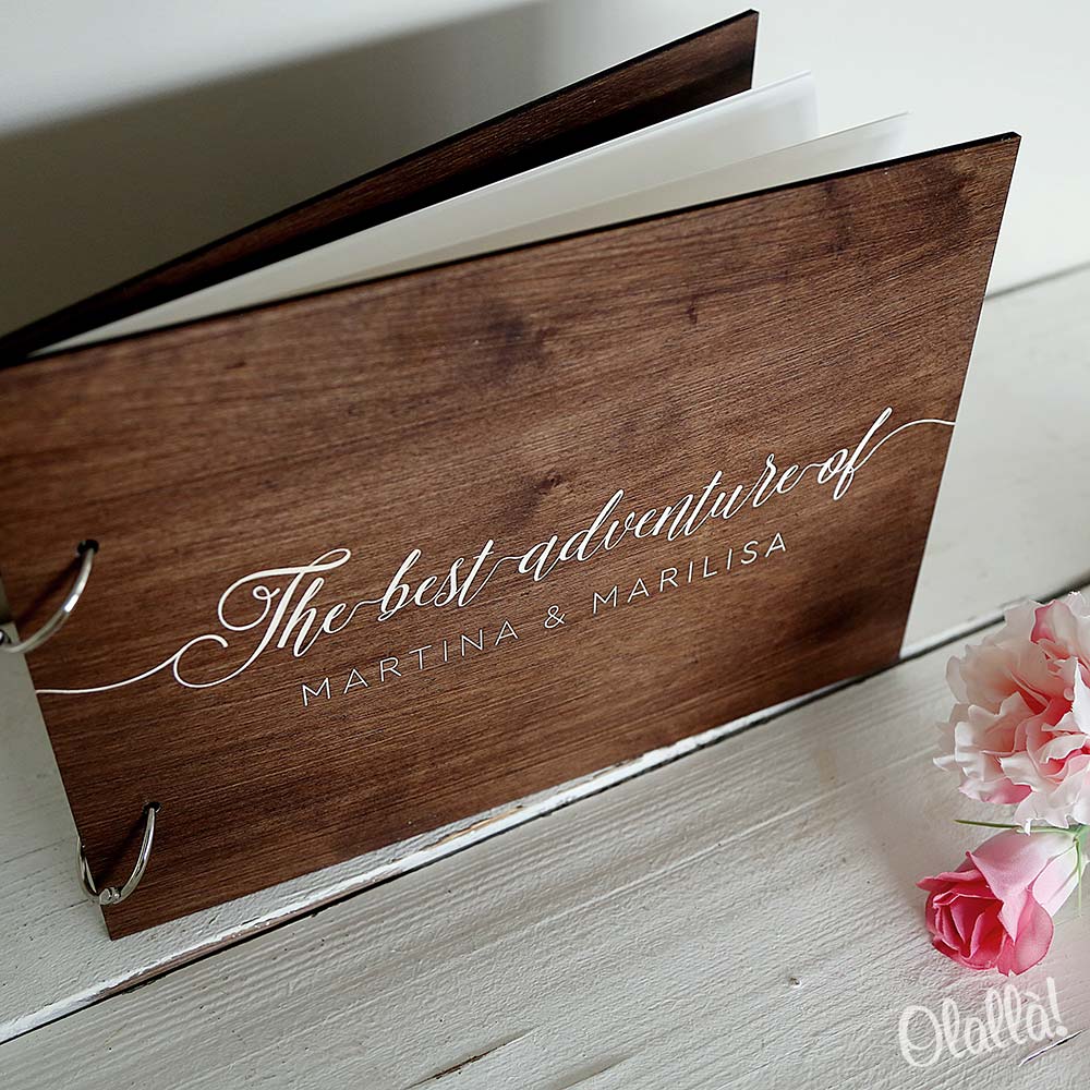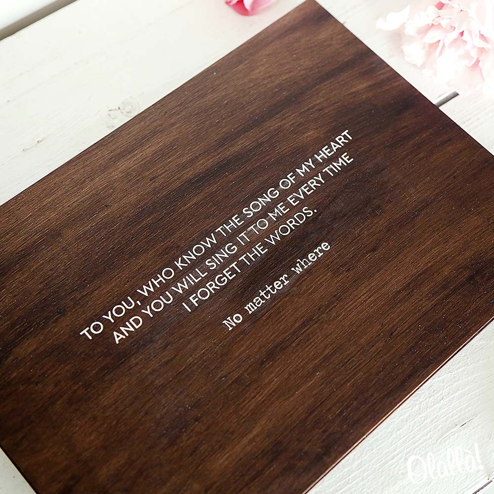 Guestbook in legno di betulla con mordente wengé personalizzato con stampa.