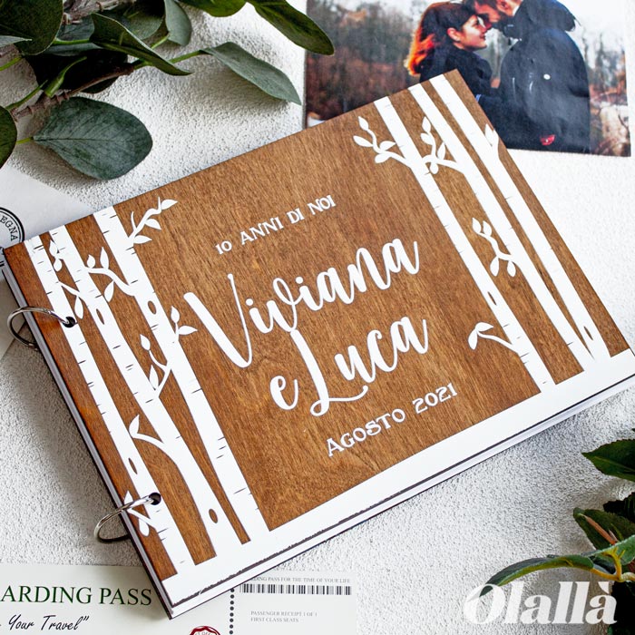Album Portafoto A5 Libro Ricordi Personalizzato in Legno Tema Foresta