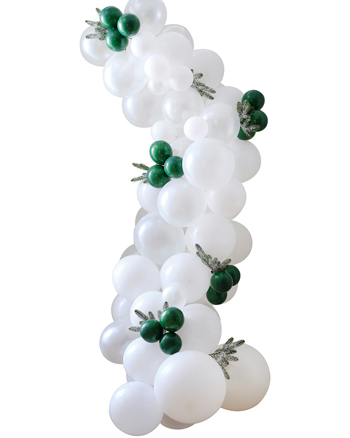 Questo kit per arco a palloncino viene fornito completo di 75 palloncini di Natale e 7 decorazioni a fogliame smerigliato. Nello specifico ci sono: