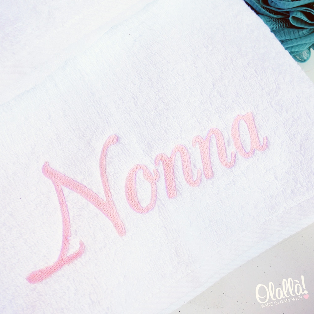 Asciugamani Ricamati Personalizzati con Nome in Corsivo – Un Regalo dal Cuore per i Nonni