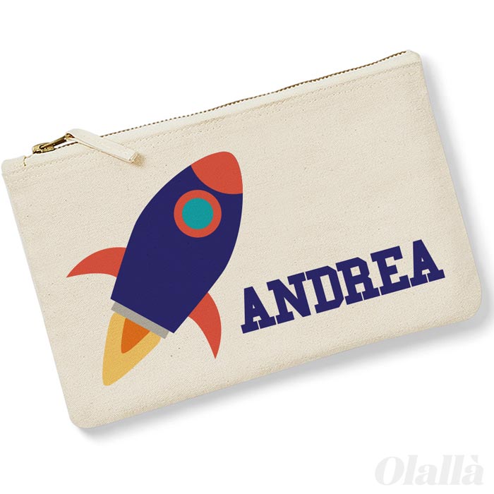 Astuccio bustina personalizzato con razzo colorate ed il nome del tuo bambino. Ideale per contenere tutti i piccoli oggetti che servono al tuo bambino a scuola, dalla mascherina al gel disinfettante per le mani, è pensata anche per matite, tovagliette e bavaglini!