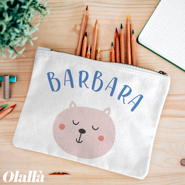 Astuccio bustina personalizzato con un tenero orsetto ed il nome del tuo bambino. Ideale per contenere tutti i piccoli oggetti che servono al tuo bambino a scuola, dalla mascherina al gel disinfettante per le mani, è pensata anche per matite, tovagliette e bavaglini!