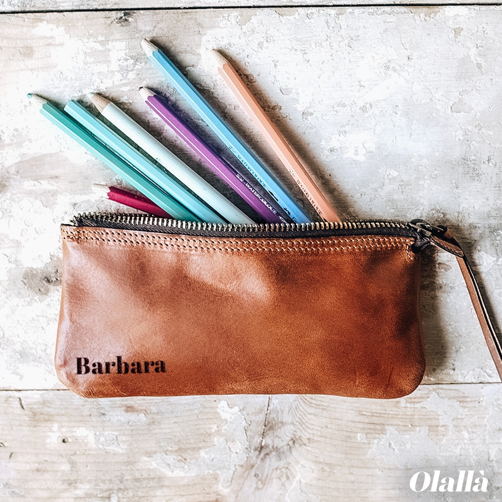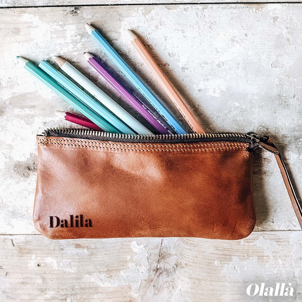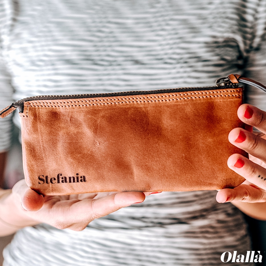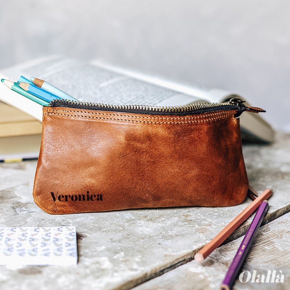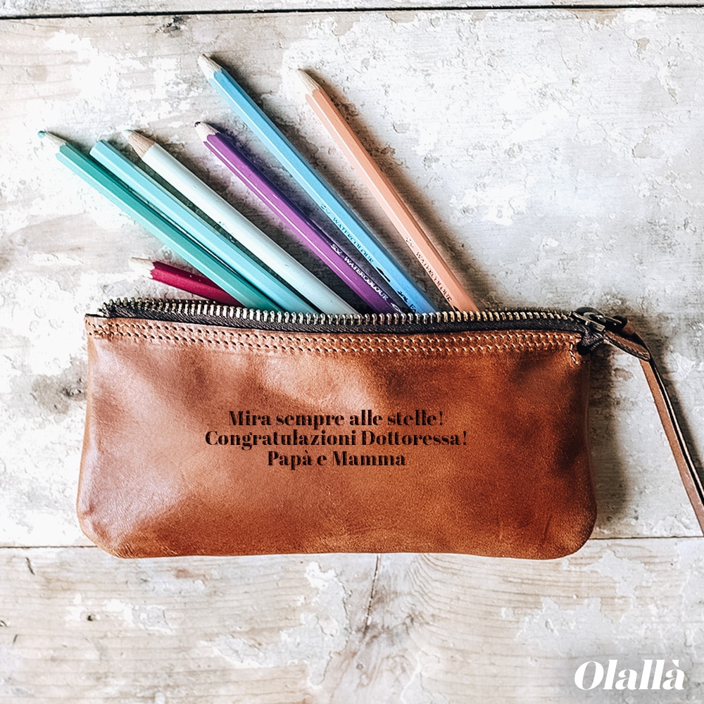 Astuccio portapenne made in Italy realizzato artigianalmente con pelle italiana. Chiusura con zip in metallo color bronzo. Personalizzabile con la tua frase incisa in maniera indelebile.
