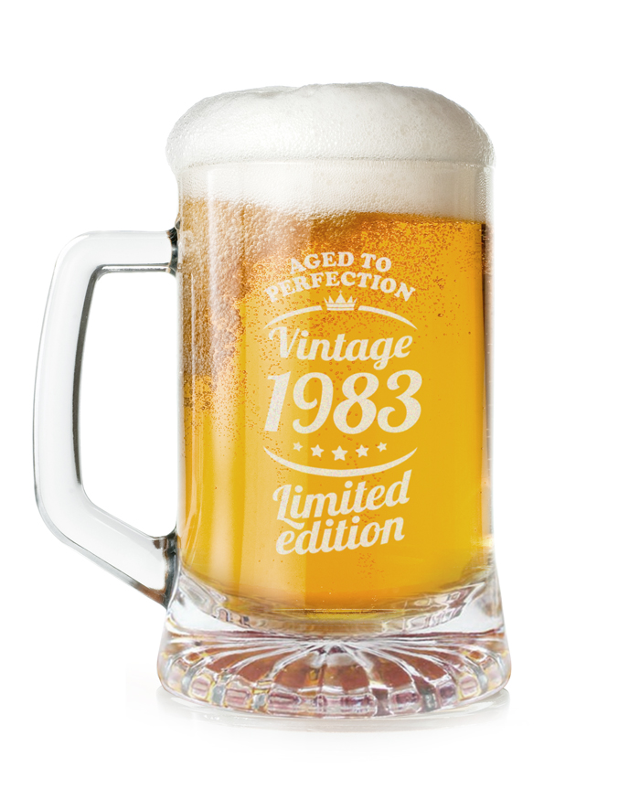 I bicchieri vengono incisi al laser. ATTENZIONE: la frase “Aged to Perfection. Vintage 1983. Limited Edition” rimane fissa e non è personalizzabile.