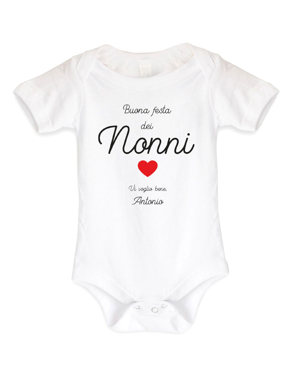 Body per Neonato, T-Shirt Bambini “Buona Festa dei Nonni” Personalizzato con Dedica e Cuoricino – Idea Regalo Nonni, Festa dei Nonni