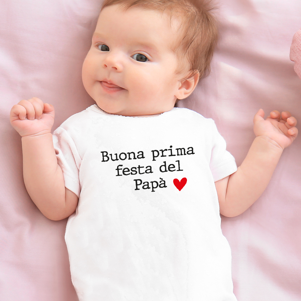 Body o T-shirt personalizzato con la scritta “Buona Prima Festa del Papà”. La scritta non è personalizzabile.