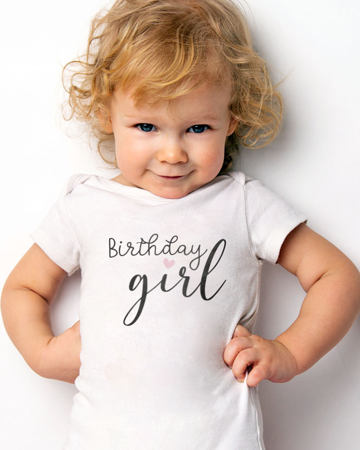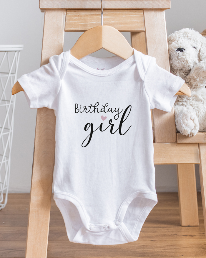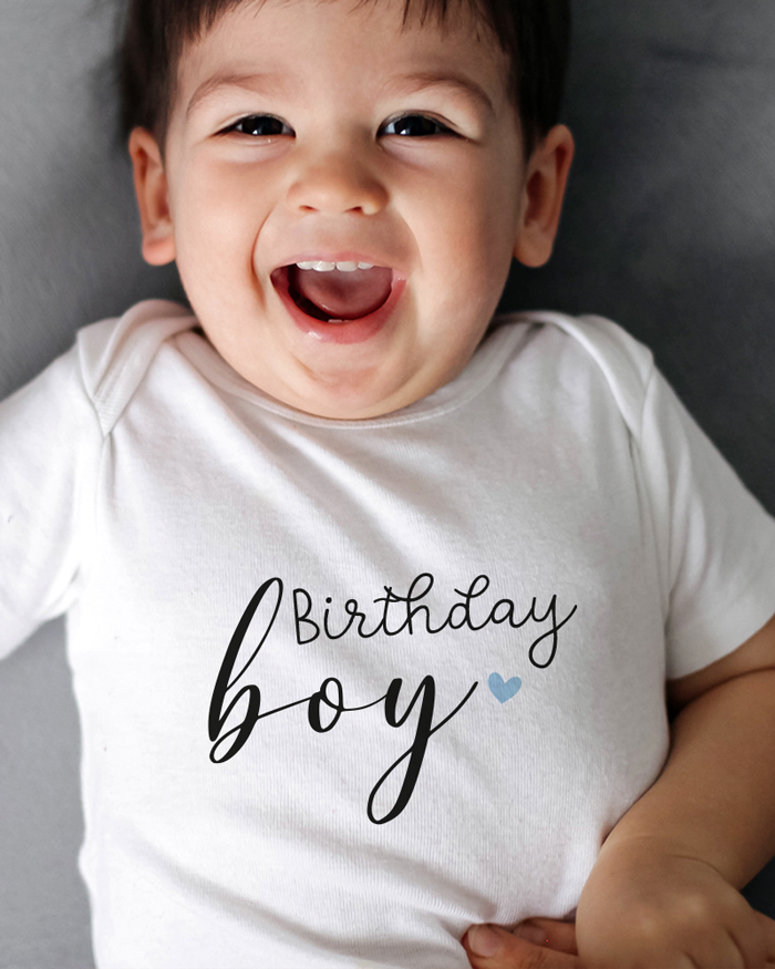 Body o T-shirt personalizzato con la frase “Birthday Boy” oppure “Birthday Girl”. la frase è a scelta tra quelle proposte..