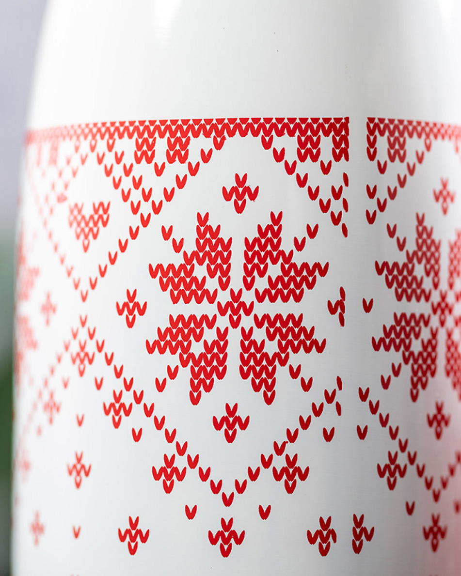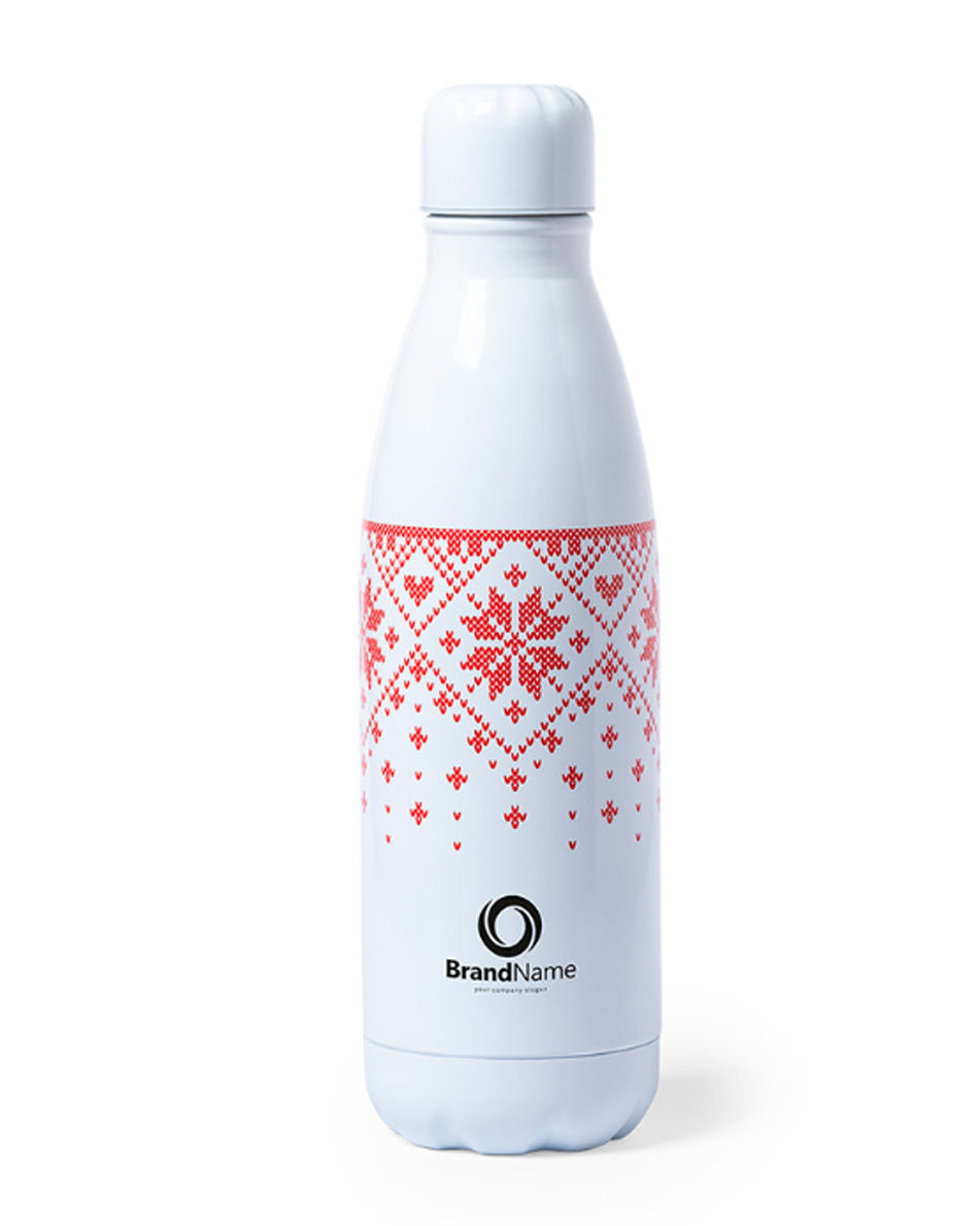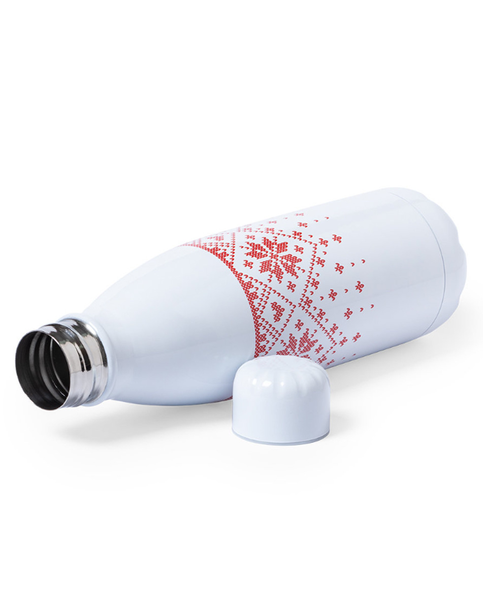 Bottiglia con corpo in acciaio inossidabile lucido e con design natalizio bicolore.