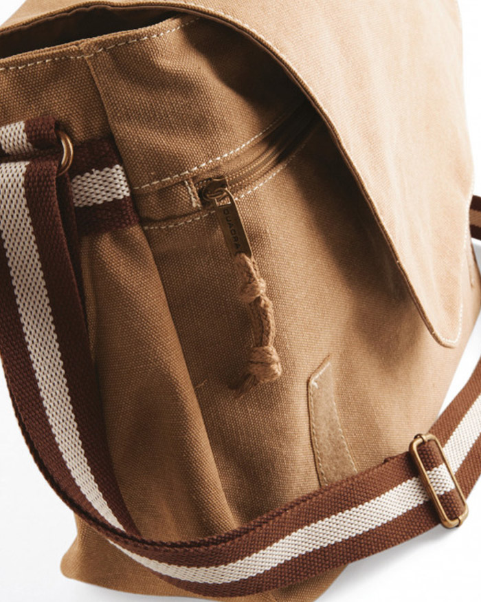 Materiali e componenti: Borsa tracolla in canvas lavato. Presenta un comparto principale regolabile con zip, duplici tasche posteriori a marsupio, numerose tasche chiuse da cerniera, base imbottita, chiusura Rip-Strip™, spallina regolabile.