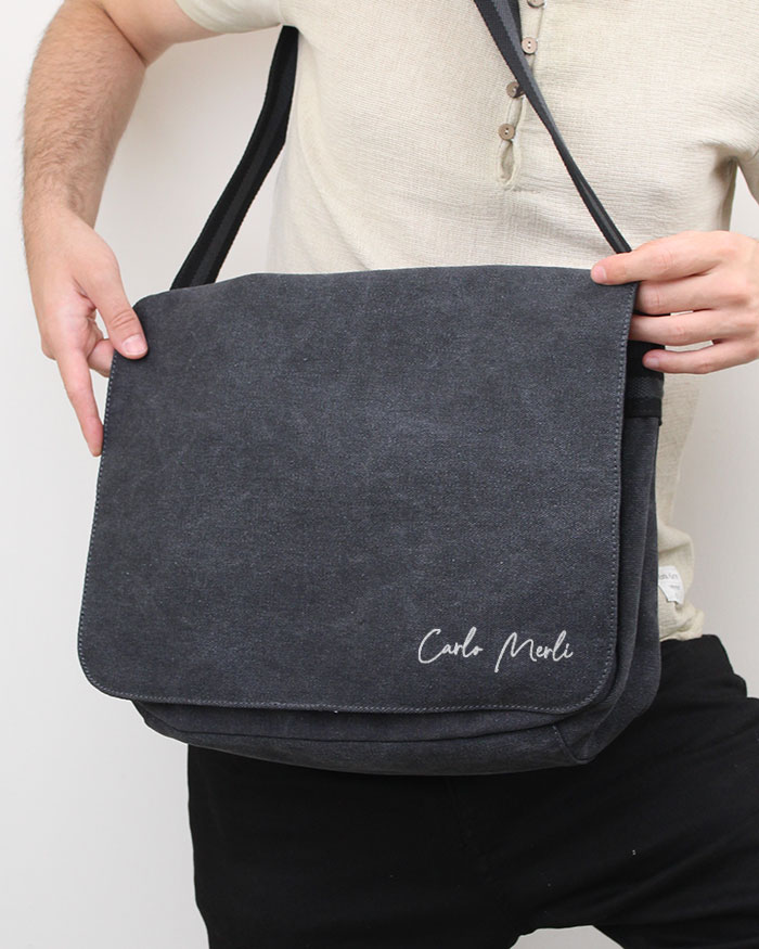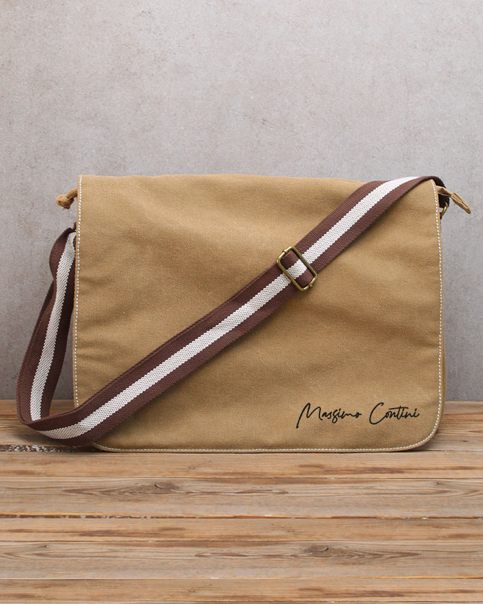 Pratica borsa a tracolla personalizzabile con il proprio nome e cognome in corsivo. Ideale per essere indossata tutti i giorni, darà un tocco vintage al vostro outfit. Sarà un’idea regalo apprezzatissima dal papà, dall’amico del cuore o dal partner a cui la donerete!