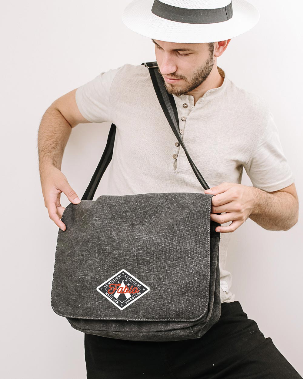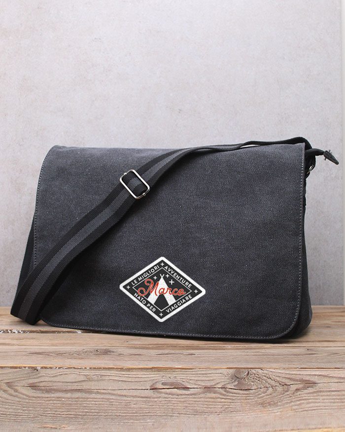 Questa maneggevole borsa a tracolla con scritta “Le migliori avventure – nato per viaggiare” personalizzabile con il proprio nome è l’ideale per rendere ancora più stiloso il vostro outfit senza tralasciare la comodità. Sarà un’idea regalo super apprezzato per il papà, per l’amico del cuore o per il vostro partner! La frase “Le migliori avventure – nato per viaggiare” non è modificabile.