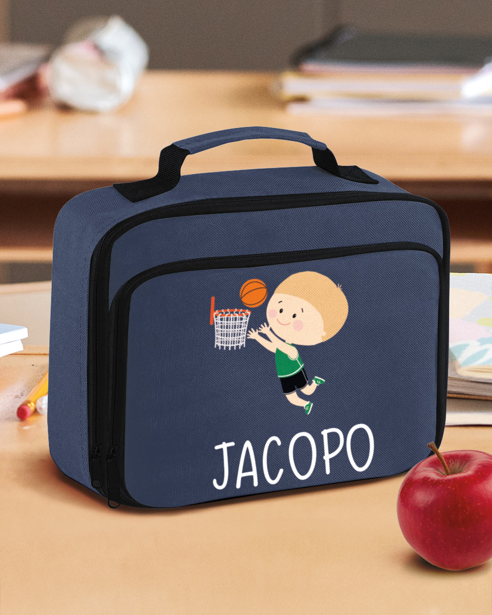 Il suono del fischio, il ritmo del pallone che rimbalza sul pavimento, l’emozione di un canestro segnato… il basket è più di uno sport, è una passione. E se il tuo bambino è un appassionato di basket, abbiamo l’accessorio perfetto per il suo back to school o ritorno all’asilo: il porta merenda per scuola e asilo con nome a tema basket.