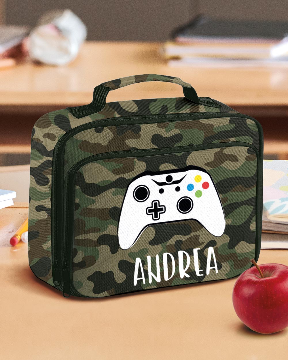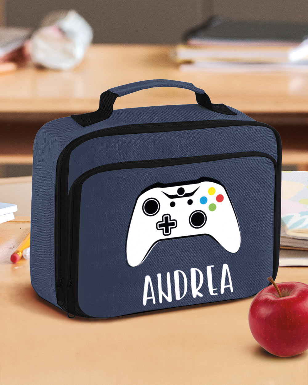 Parti per una nuova avventura scolastica con la nostra borsa termica personalizzata con nome e joystick! Ideale come borsa frigo, questo accessorio è il regalo perfetto per il ritorno a scuola o all’asilo. La personalizzazione unica e divertente trasforma ogni pausa pranzo in un gioco.