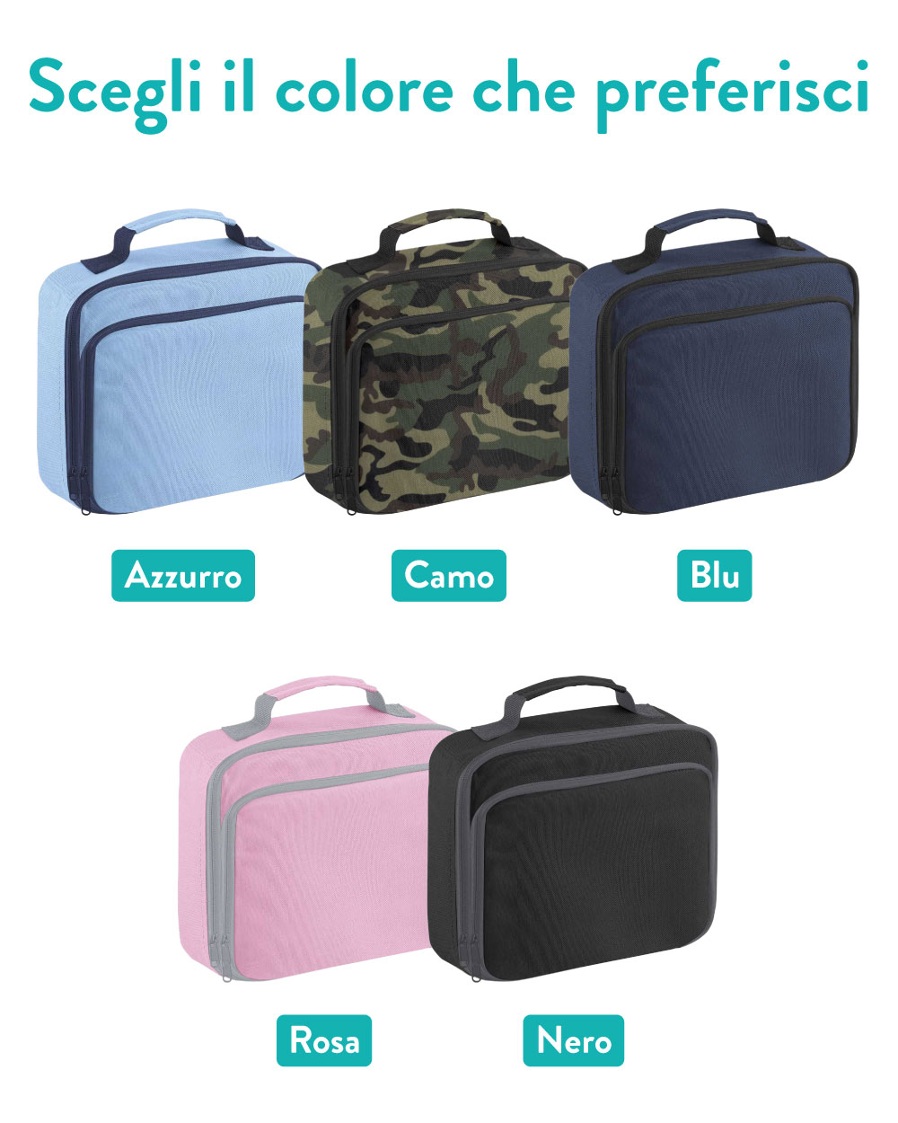 Borsa frigo disponibile in 5 colori, personalizzabile con nome.