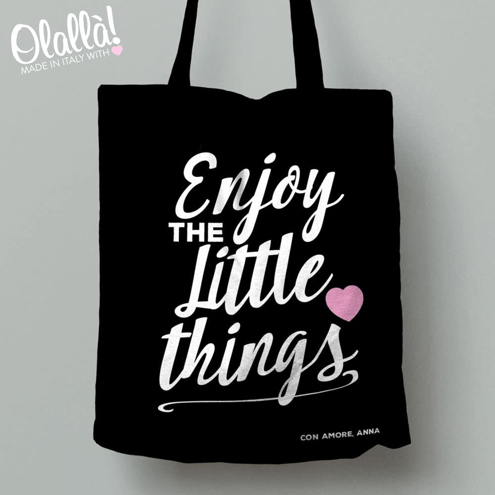 Desideri recapitare questa borsa shopper personalizzata al destinatario del tuo regalo all’interno di una confezione regalo accompagnata da un bigliettino d’auguri scritto a mano? Non ti resta che selezionare l’opzione prima di metterla sul carrello.