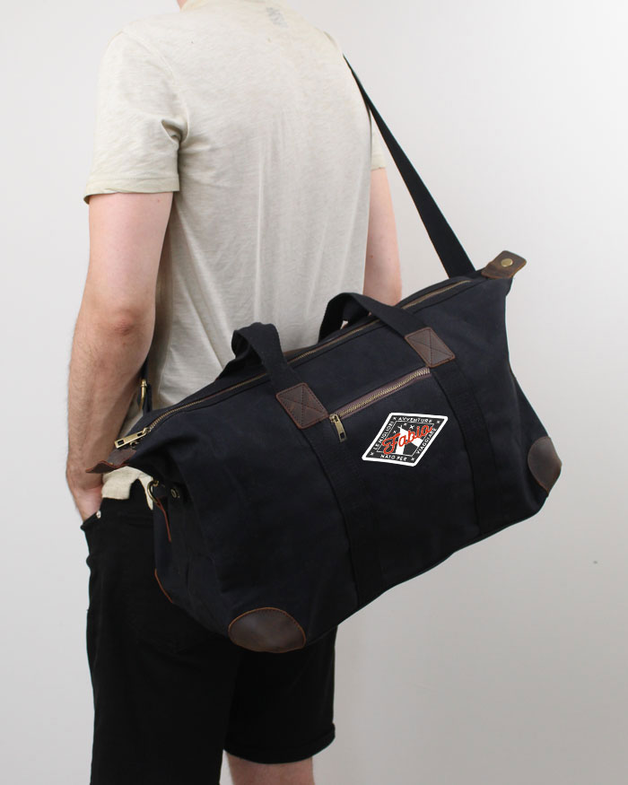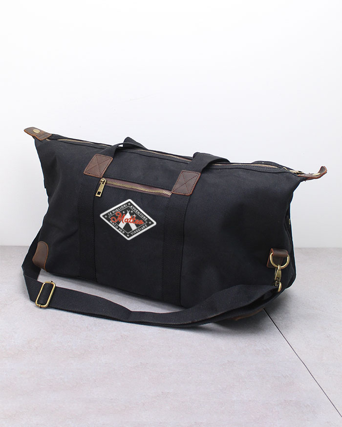 Materiali: 100% cotone, tela cerata in cotone, finiture in pelle, raccordi in ottone anticato, manici in tela di cotone. Interamente foderato, è presente una tasca interna. Lo scomparto principale extra lungo ha chiusura a zip per facilitare l’accesso al contenuto. La tracolla è regolabile e staccabile.