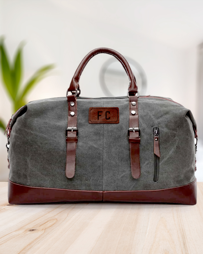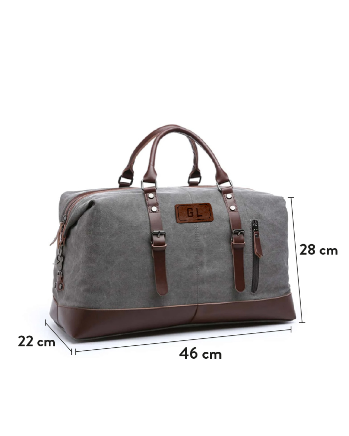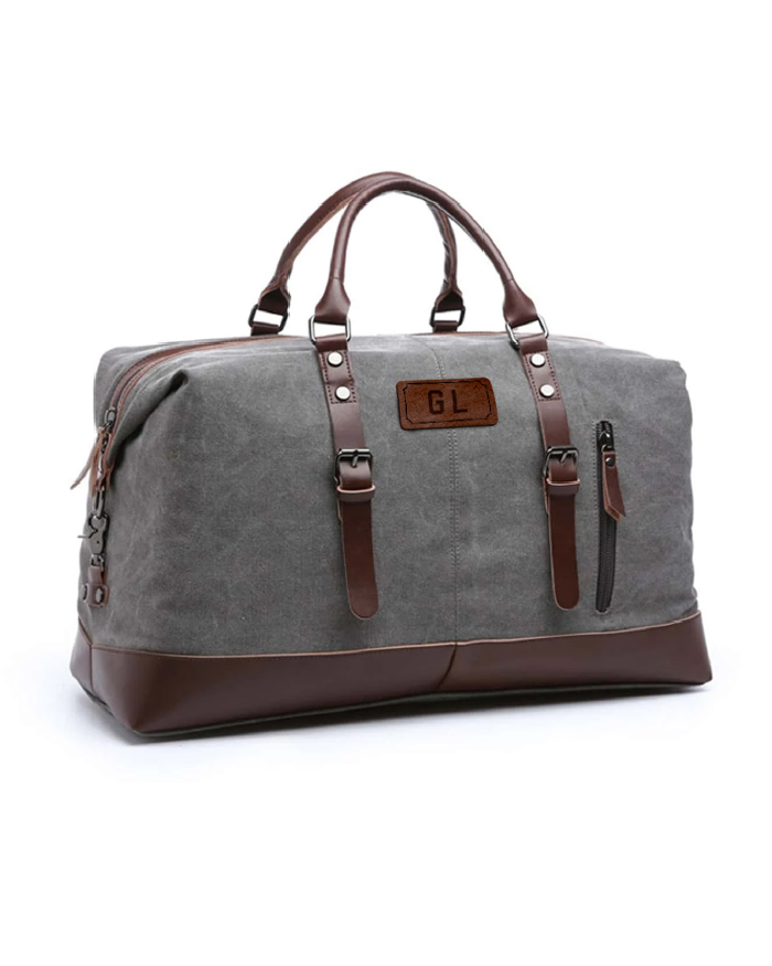 Sportivo Borsone in Tela con finiture in cuoio, personalizzato con le iniziali che desideri per uno stile sportivo ma comunque elegante!
