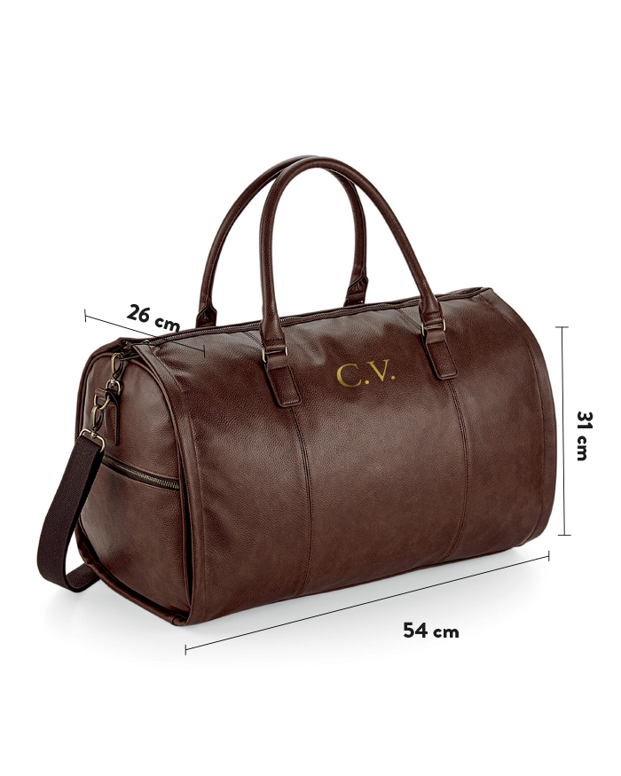 2 recensioni per Borsone da Viaggio Porta Abito in Ecopelle Marrone Personalizzato con Iniziali e Tracolla – Idea Regalo per Chi Viaggia Spesso, Regalo per la Laurea, Regalo per Lui