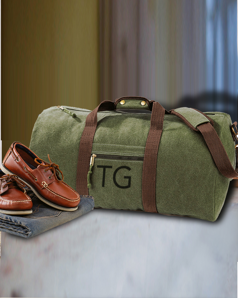 Borsone in Cotone Canvas Vintage con Tracolla per Uomo Personalizzato con Iniziali