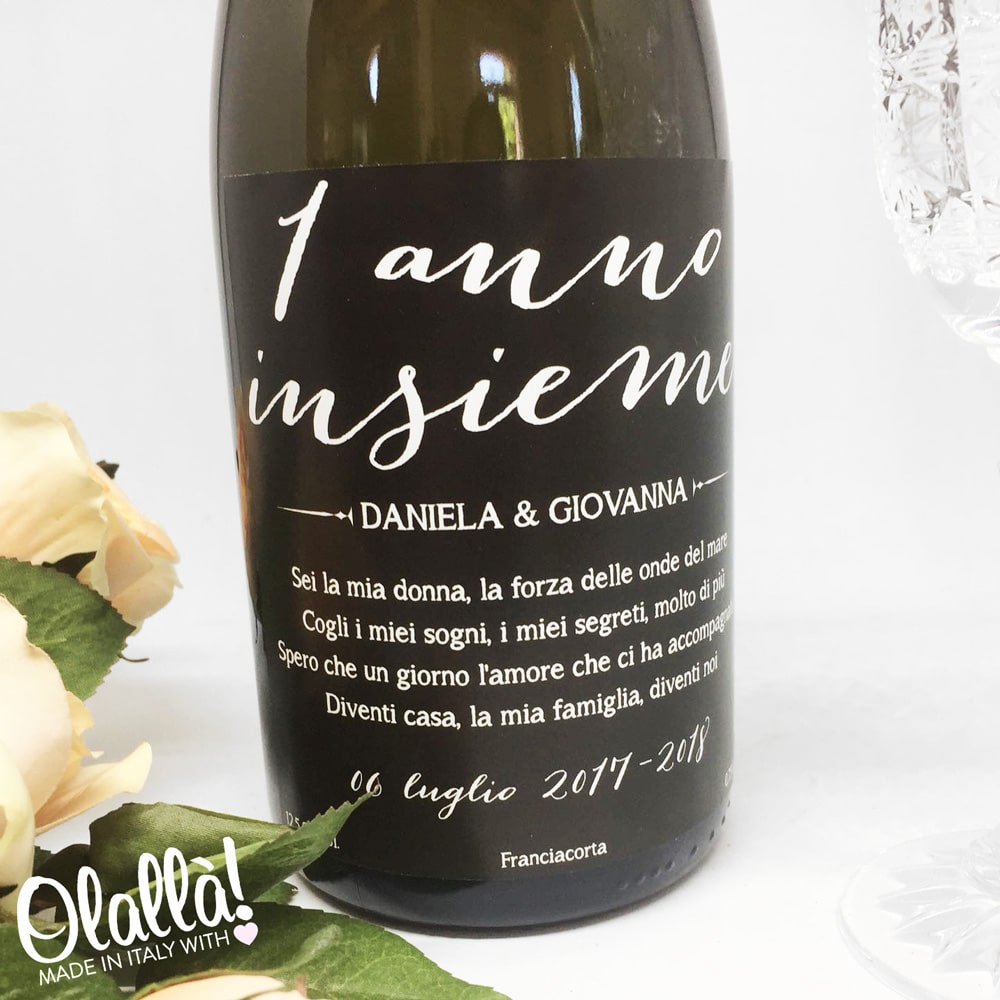 Lusso, design e buon spumante si combinano assieme in questa magnifica bottiglia magnum personalizzata, ideale come regalo di anniversario per il vostro caro appassionato di buon vino. La bottiglia contiene un eccellente vino bianco spumante extra dry, prodotto in Romagna.