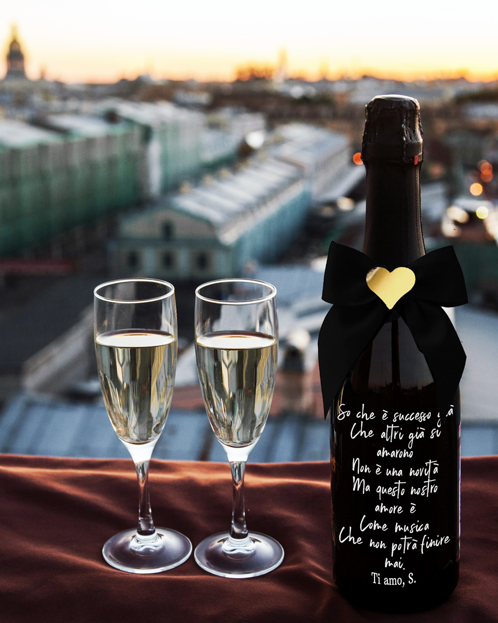 - PER SAN VALENTINO (ma non solo): perché non brindare a voi due con questa bellissima bottiglia? Che sia per San Valentino o per l’anniversario, stappatela per per dichiararvi tutto l’amore che provate stando assieme.