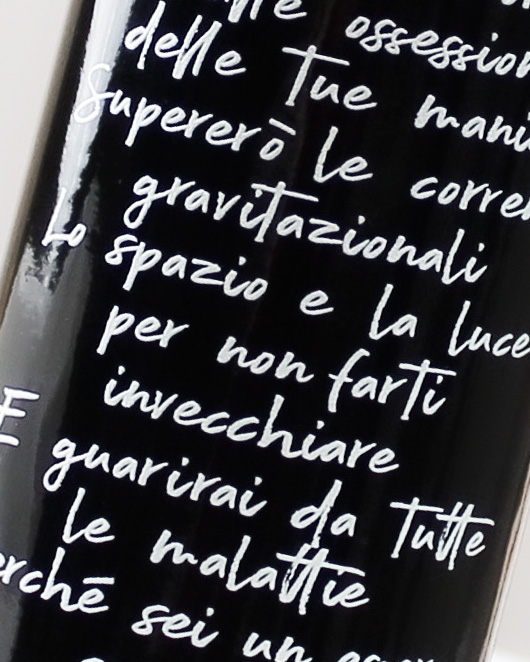 - 100% PERSONALIZZABILE: scegli il vino che preferisci e personalizza la tua bottiglia con una frase della vostra canzone del cuore. In fondo potrai anche inserire una piccola dedica secondaria di auguri!