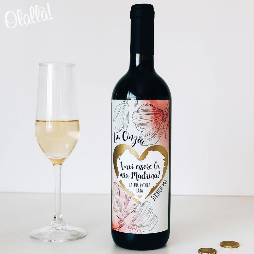 Bottiglia Gratta e Vinci Personalizzata con Frase Segreta e Nome – Idea per Proposta Madrina Battesimo