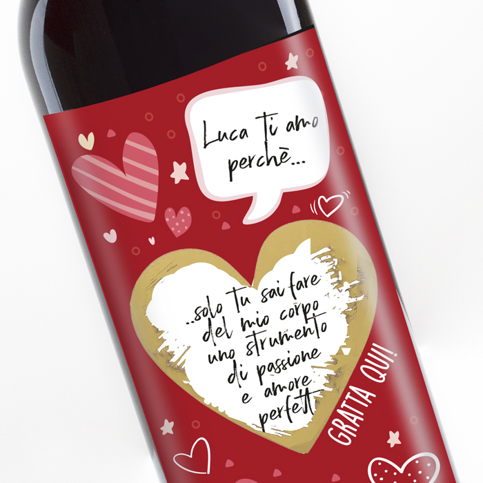 Personalizza la tua bottiglia compilando quanto ti viene richiesto nei campi del menù prima di aggiungerla al carrello. L’etichetta personalizzata viene stampata su carta di alta qualità.