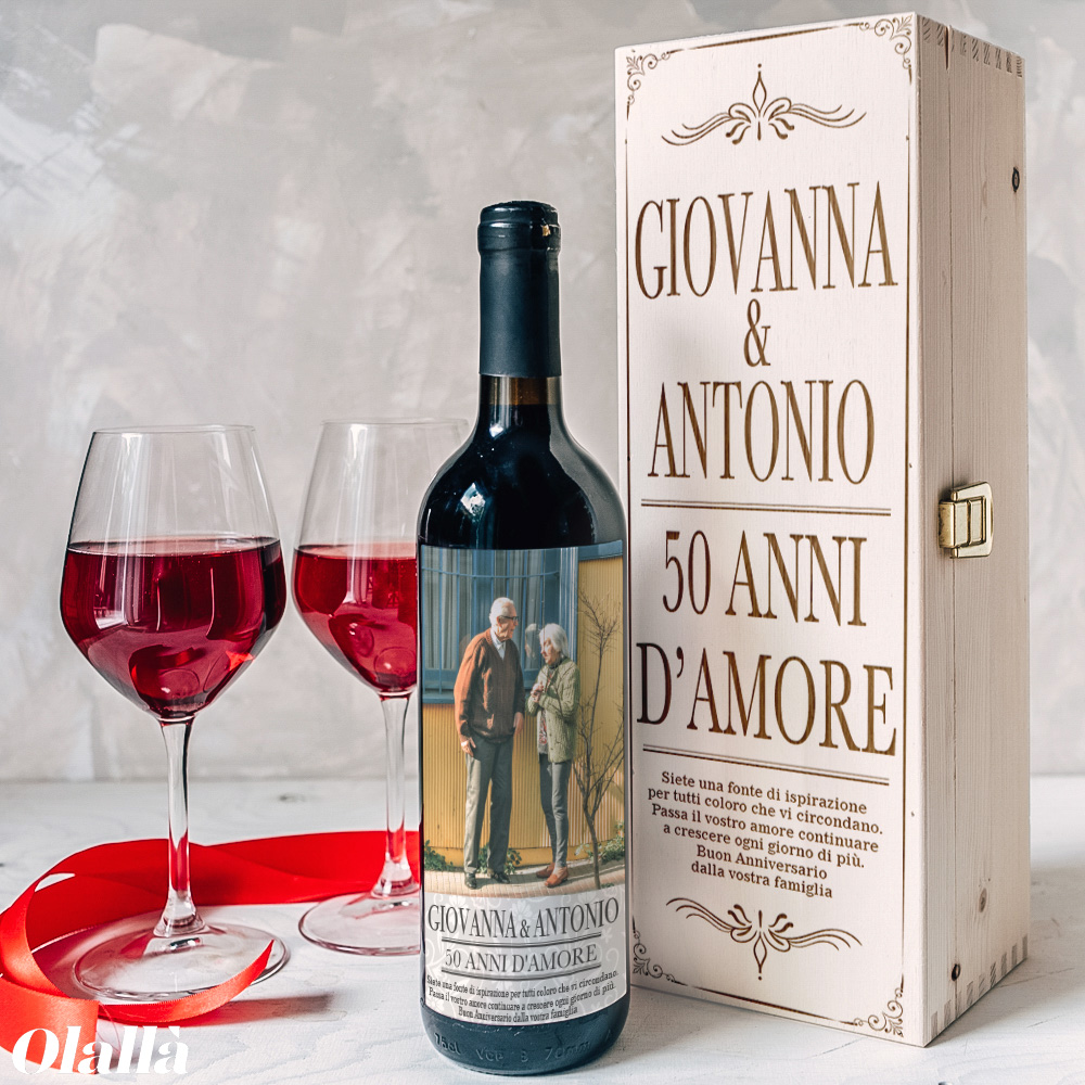 Queste bottiglie personalizzate sono un regalo perfetto per tutti gli amanti del bere bene, ed un complemento eccezionale per rendere ogni festa davvero unica! I nostri grafici sono sempre a vostra disposizione per creare etichette su misura per il vostro evento o occasione importante. Vuoi fare un grande ordine? Contattaci per maggiori informazioni a servizioclienti@olalla.it per conoscere i nostri sconti sui grandi acquisti.