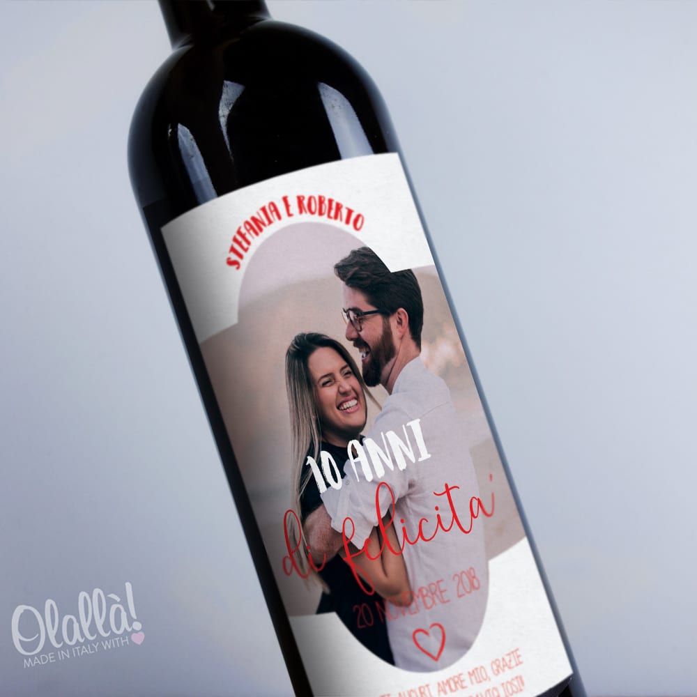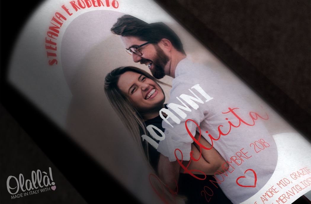 L’etichetta personalizzata della bottiglia è davvero molto carina e ben fatta.. il vino lo asseggerò all’anniversario quindi vi dirò poi si è buono!