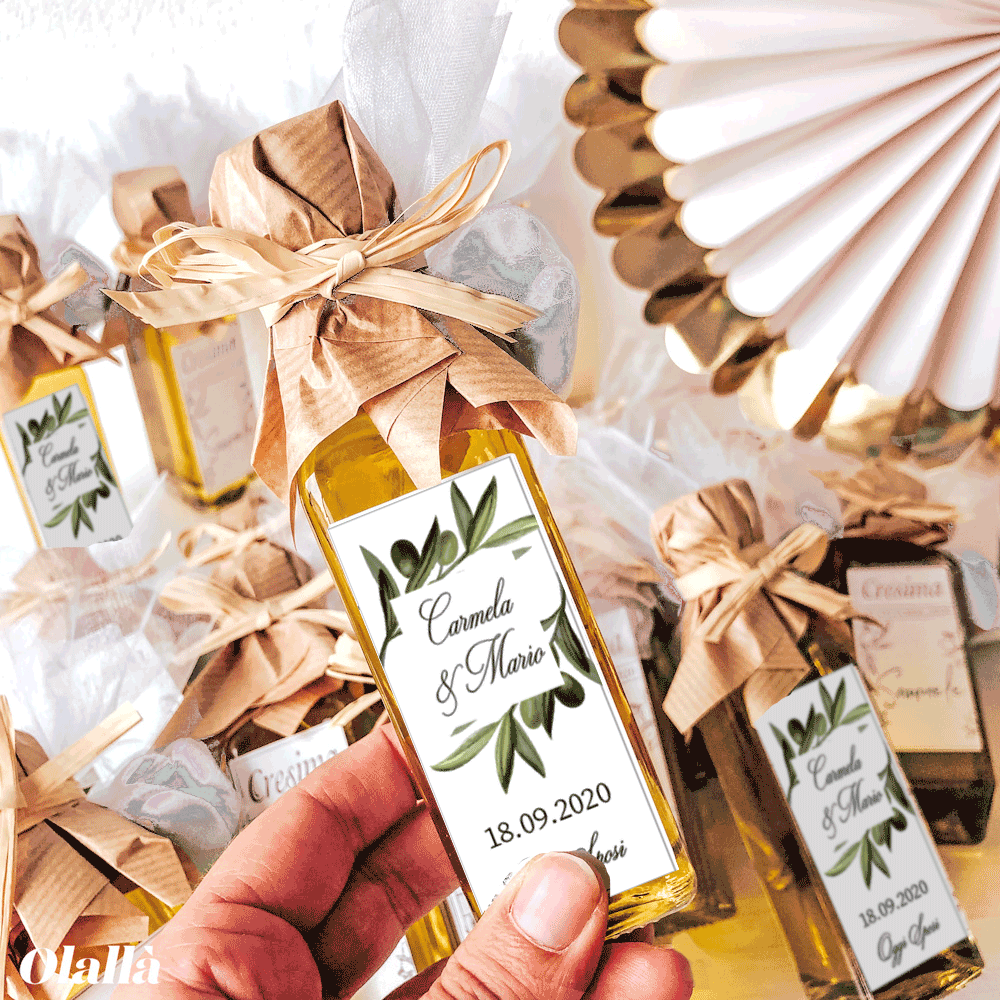 1 recensione per Bottiglietta di Olio Extra Vergine d’Oliva Italiano, con Etichetta Personalizzata – Bomboniera Matrimonio