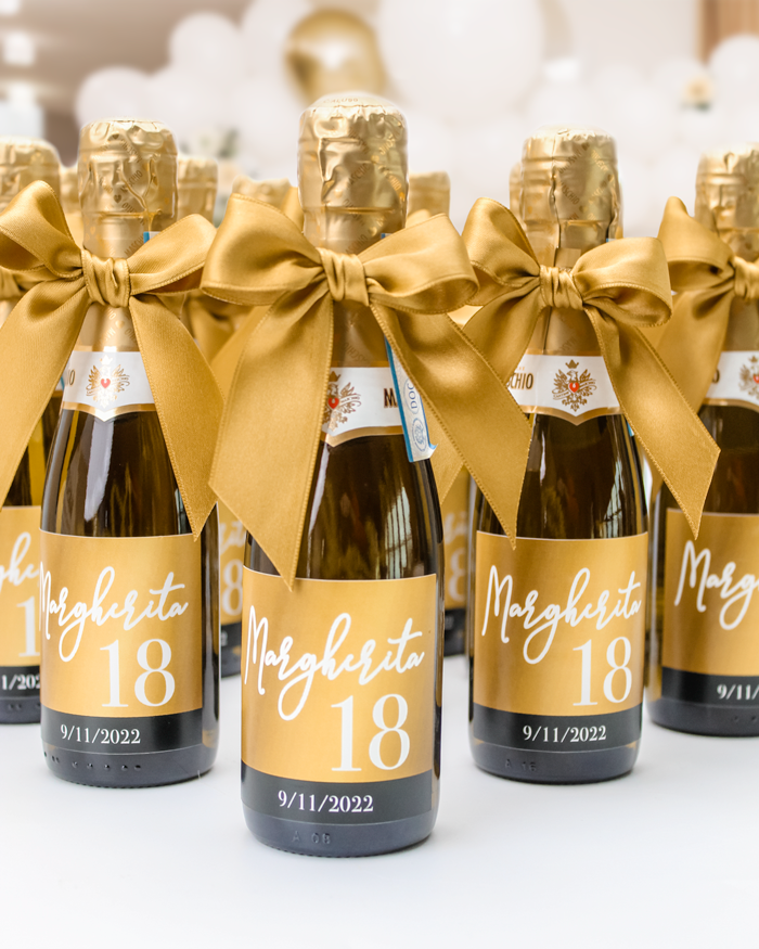 Mini bottigliette di prosecco brut o spumante mignon di qualità italiana d’eccellenza, personalizzate come desideri. Dai il via alla festa e brinda insieme ai tuoi amici e ai tuoi cari, con queste mini bottigliette sarà un tripudio di allegria!
