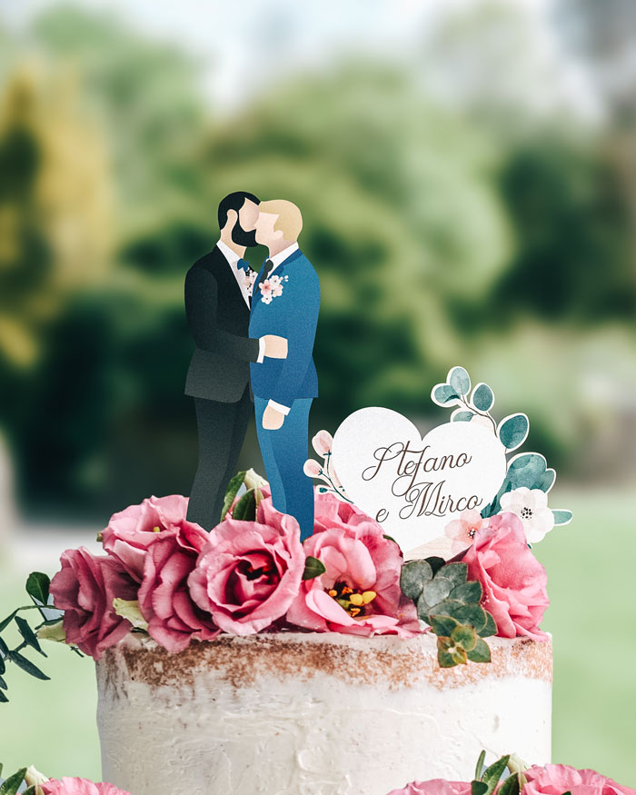 Bellissimo Cake Topper in legno personalizzato per decorare la tua torta nuziale, formato dalla coppia di sposi e personalizzabile con l’aggiunta del neonato, del bambino oppure del cane. Rendi perfetta la tua torta di matrimonio creando il tuo cake topper personalizzato per rappresentare la tua famiglia e dare un tocco finale di classe alla tua cerimonia. Questo cake topper personalizzabile è interamente fatto a mano e lo potrai conservare come ricordo di questo magnifico giorno per tutta la vita.