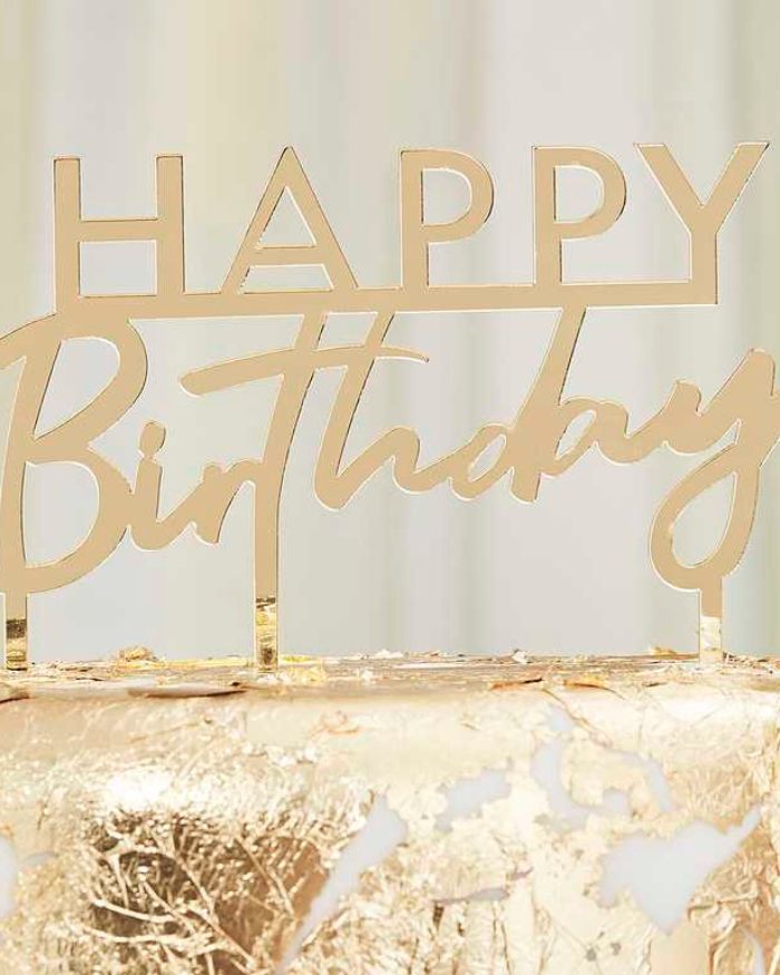 Carinissimo Cake Topper dorato con scritta “Happy Birthday” perfetto per decorare la tua torta di compleanno con stile e allegria. Rendi indimenticabile la tua torta di compleanno con questo accessorio che aggiunge un tocco unico ai tuoi festeggiamenti.
