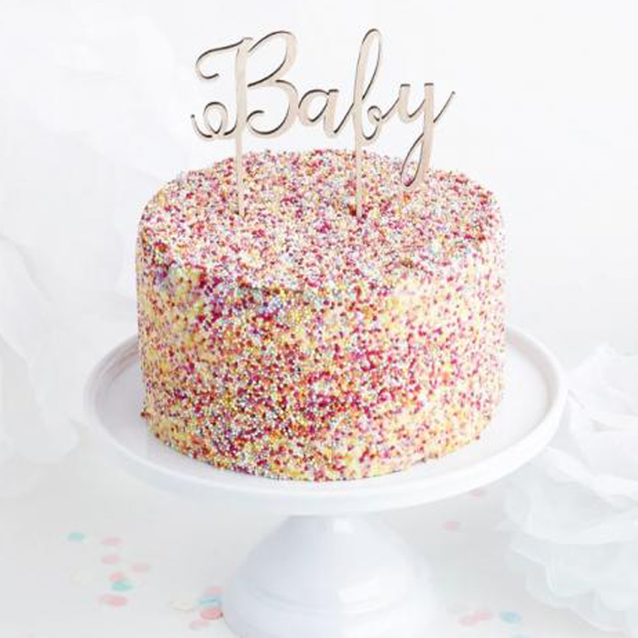 Stupendo cake topper in legno con la scritta “Baby”. Un cake topper perfetto per rendere unica la torta del battesimo oppure del compleanno!