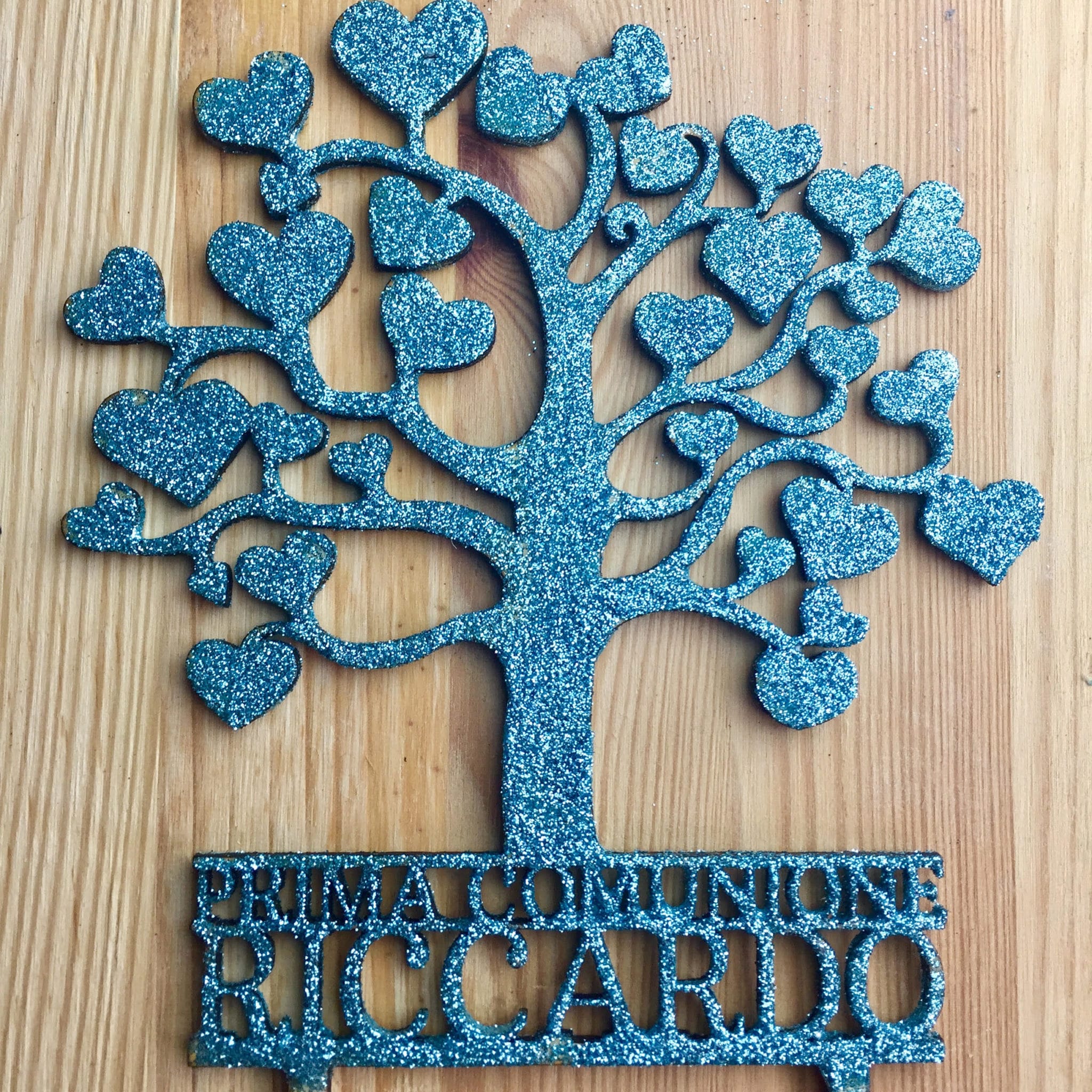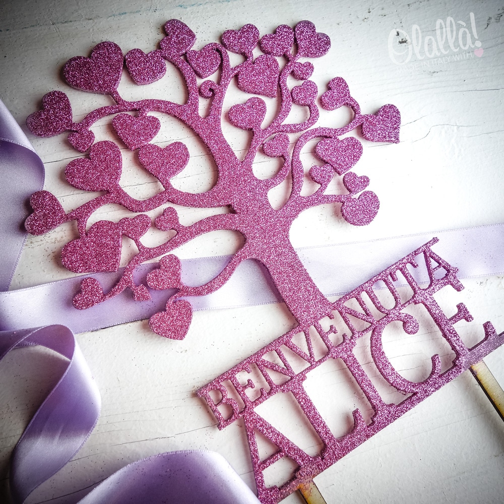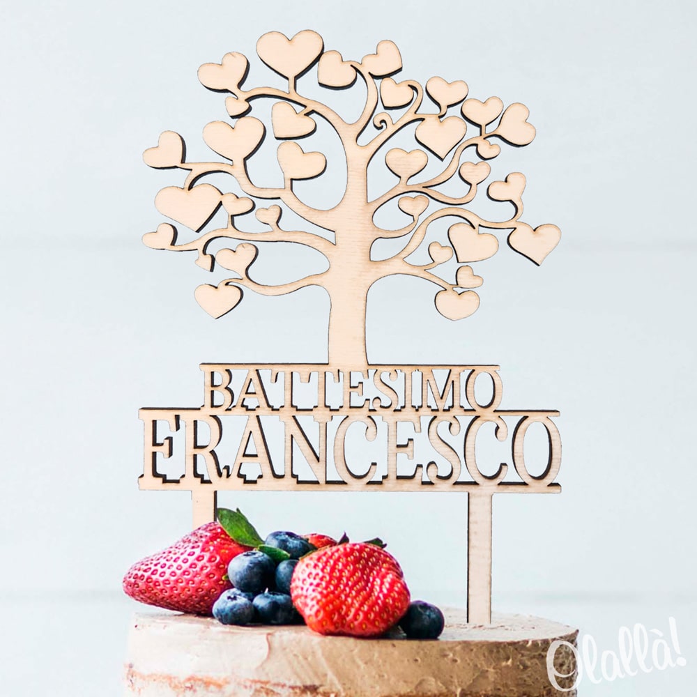 Cake topper a forma di albero della vita con la scritta “Benvenuta” o “Prima Comunione” e il nome del piccolo/a. Questo cake topper è solo uno dei moltissimi cake toppers personalizzati che possiamo realizzare per te. E’ possibile ordinare un cake topper personalizzato per tutte le tue occasioni speciali: per torte nuziali, per torte di fidanzamento, per baby shower, battesimi, comunioni, compleanni, 50 esimi di matrimonio, pensionamenti…insomma chiedi e ti sarà creato!