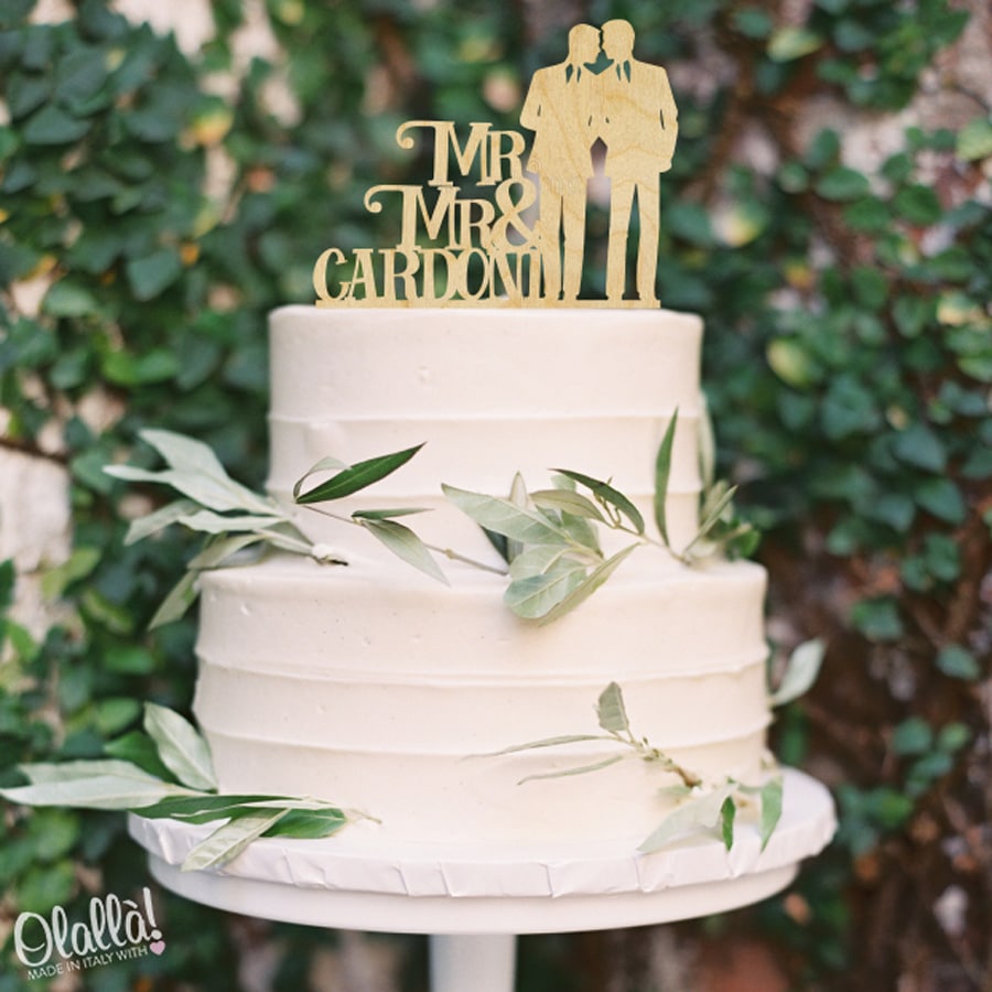 Romantico cake topper per le nozze di due uomini innamorati, con nome e sagome che si baciano. Puoi decidere se realizzarlo in legno di betulla o plexiglass, scegli il colore, la dimensione, il nome da scrivere, e noi lo realizzeremo su misura per te. Se vuoi apportare delle modifiche o delle aggiunte particolari, contattaci al servizioclienti@olalla.it, i nostri grafici ti aiuteranno e consiglieranno nel migliore dei modi per un prodotto finale di successo. I nostri cake topper sono dotati di bacchettine per agevolare l’inserimento sulla torta, da fare comunque con delicatezza per evitare di danneggiarle, essendo comunque sottili.