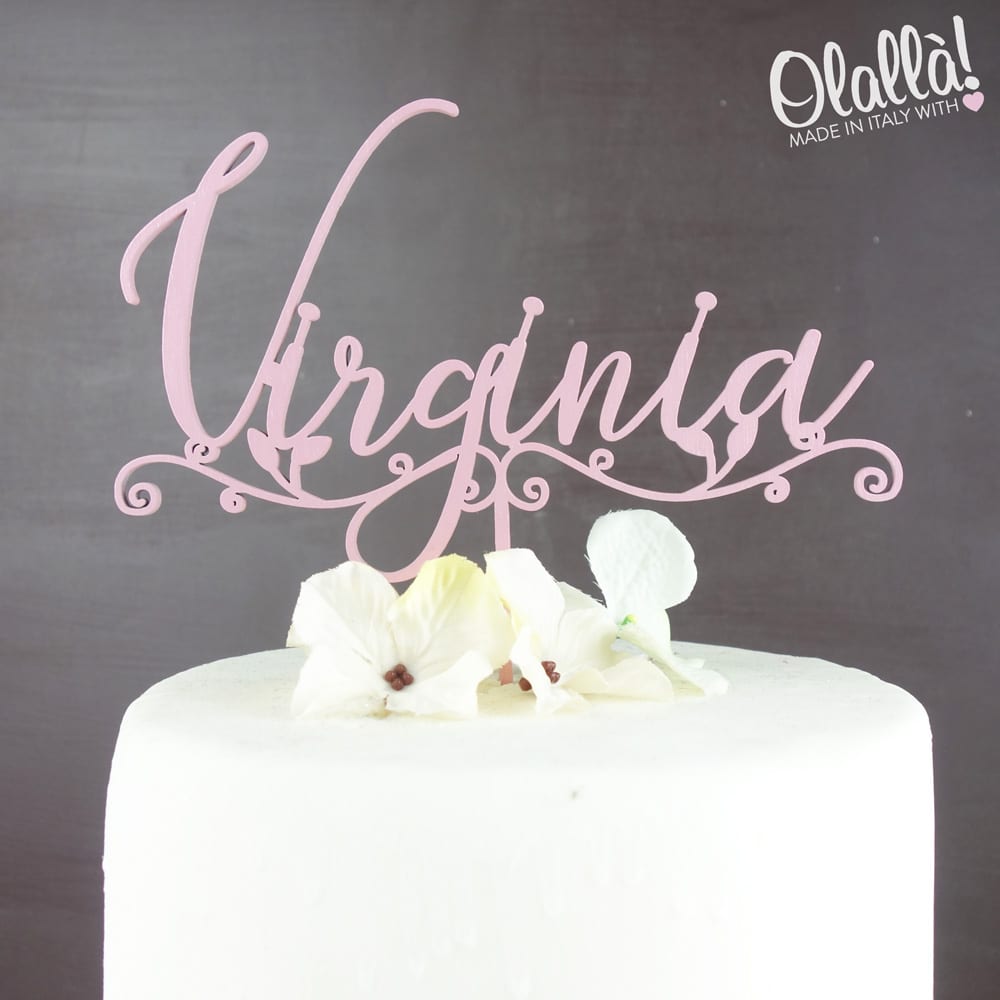 Cake topper 100% made in Italy, in legno di betulla o acrilico, con il nome della persona e un particolarissimo decoro floreale che lo rende unico e magico. Puoi decidere di personalizzarlo come preferisci, indicando cosa desideri scrivere, il colore e le dimensioni che meglio rispecchiano le tue esigenze, e nel caso volessi apportare ulteriori modifiche, siamo a tua disposizione al servizioclienti@olalla.it per aiutarti come meglio possiamo. Applica il cake topper sulla tua torta per darle un tocco di originalità, grazie al bacchetto di cui è dotato, ricordandoti sempre di usare molta cautela, perchè essendo sottili, sono anche prodotti molto fragili.
